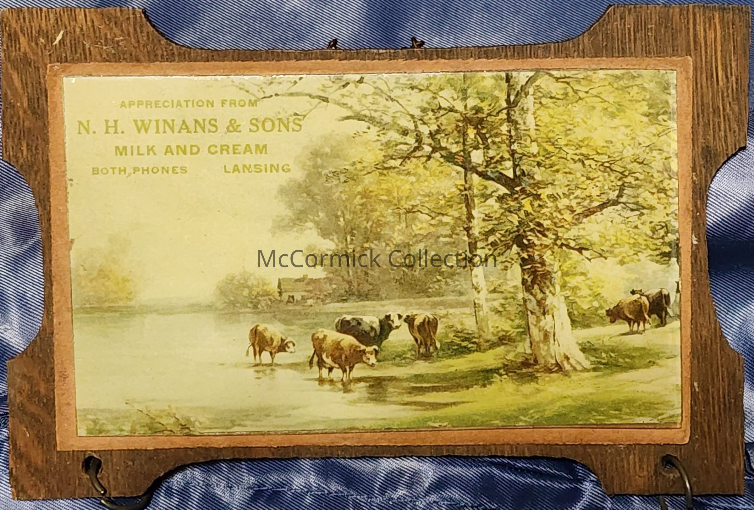 A wood and glass advertisement of the N.H. Winans Dairy of Lansing.