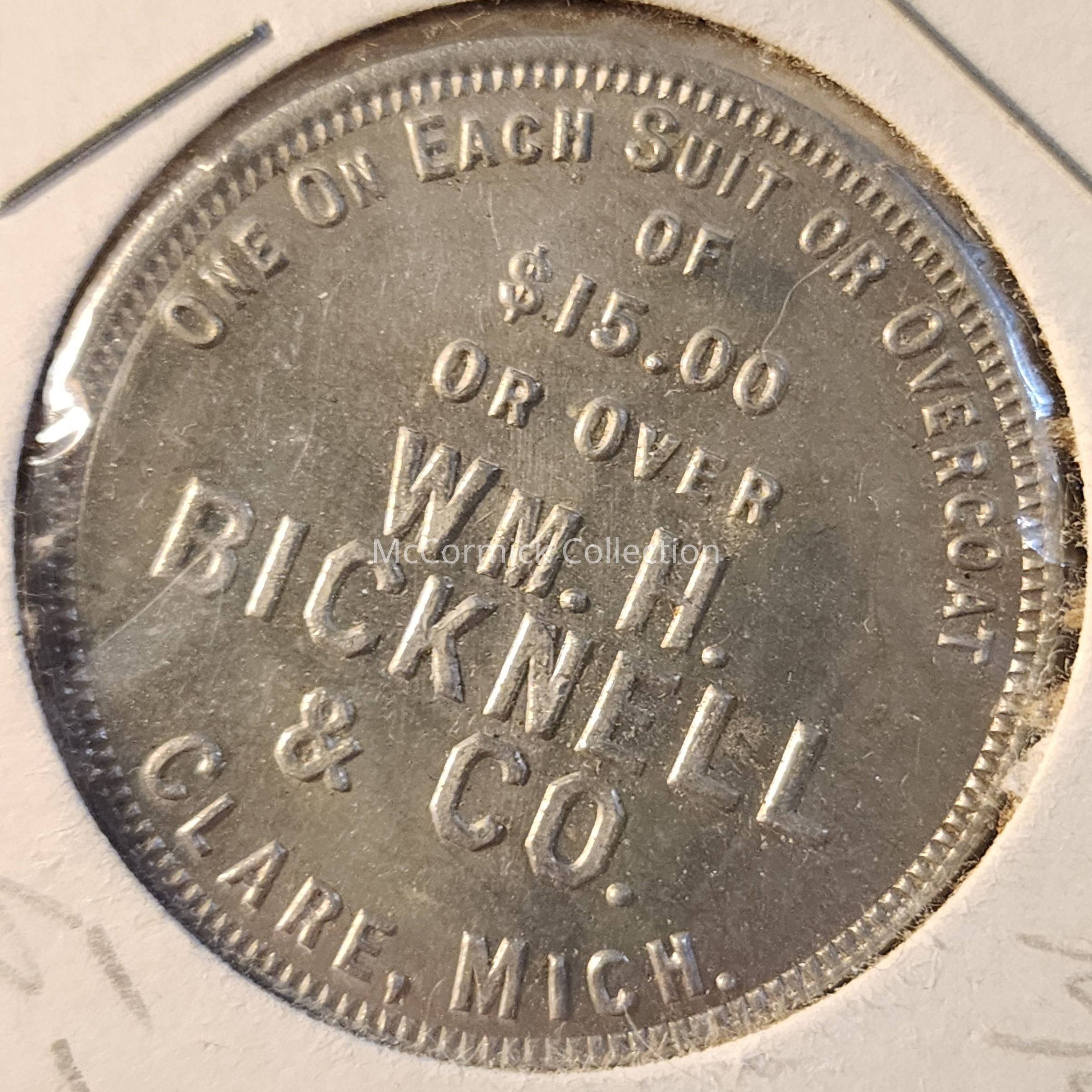 Wm. H. Bicknell, Clare, Mich., Trade Token