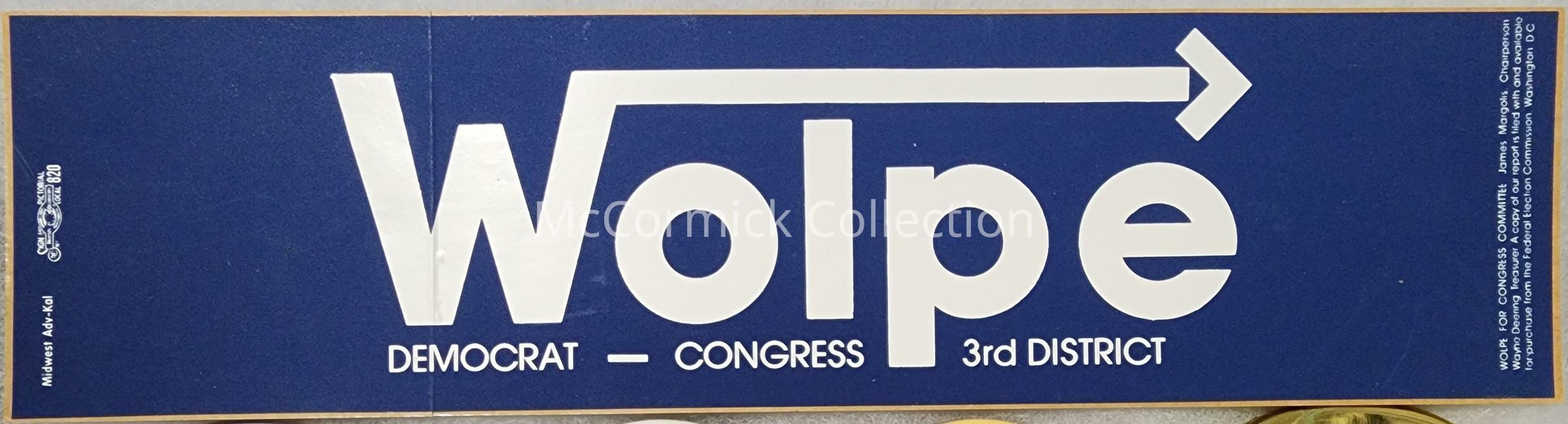 Blue and white bumper sticker for Howard Wolpe for Congress. Circa 1980s.