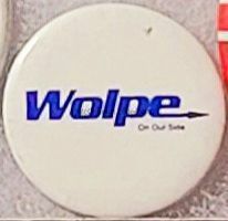 A blue and white political button for Howard Wolpe "on our side." Congress.