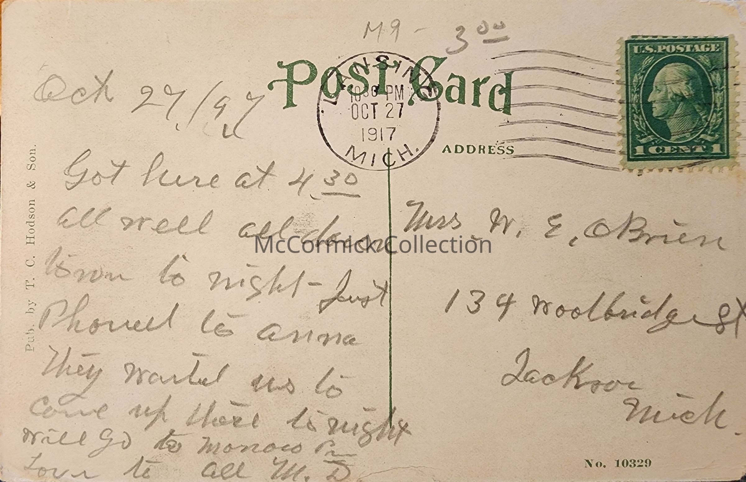 Postally used, Lansing 1917 postmark.