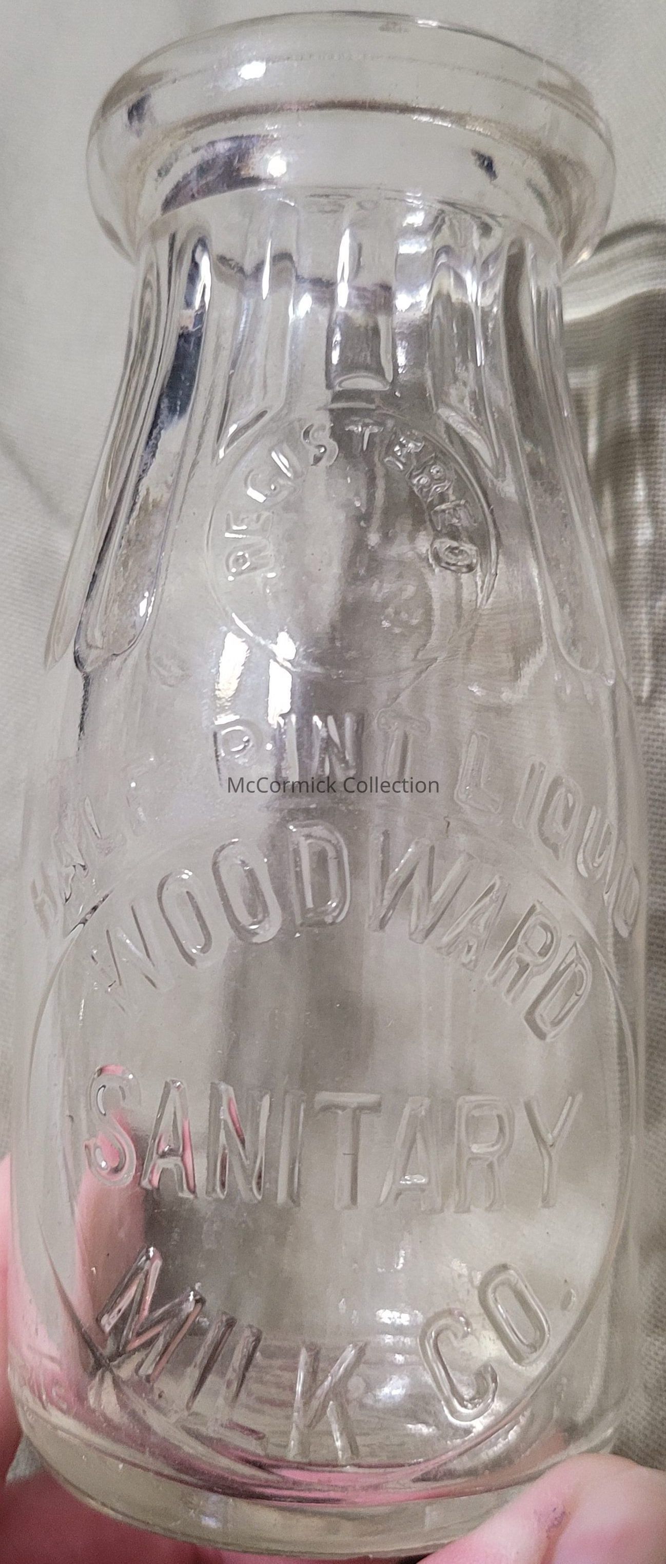 Woodward Sanitary Milk Co. Embossed Half Pint Bottle