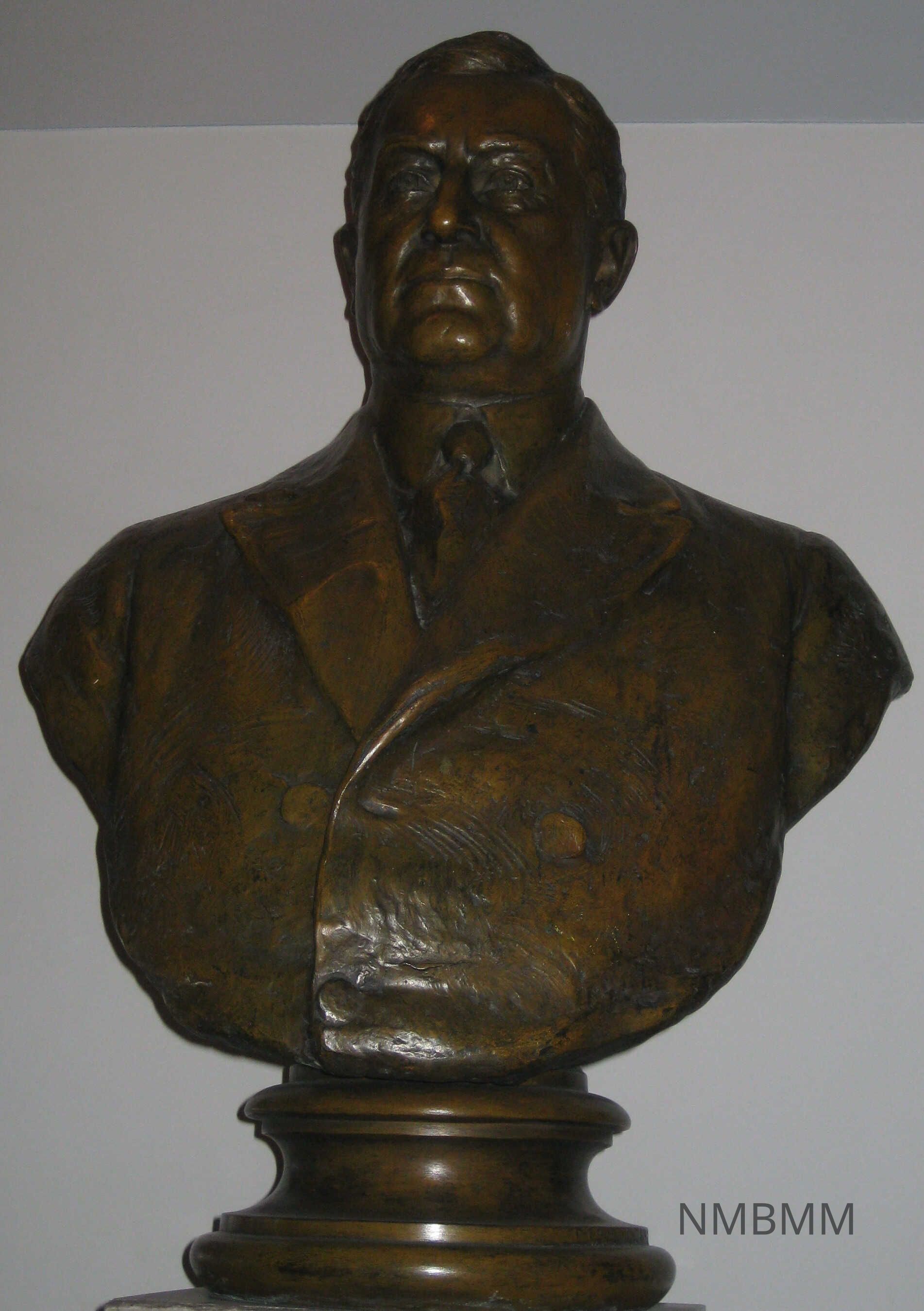BRONZE BUST OF WILLIAM PENN SNYDER, 37" HIGH. MARBLE PEDESTAL, 60" HIGH WITH BIOGRAPHICAL INFORMATION ON PEDESTAL " LEADER IN IRON ORE, PIG IRON AND COKE MARKETS; PIONEER IN SMELTING.Collection