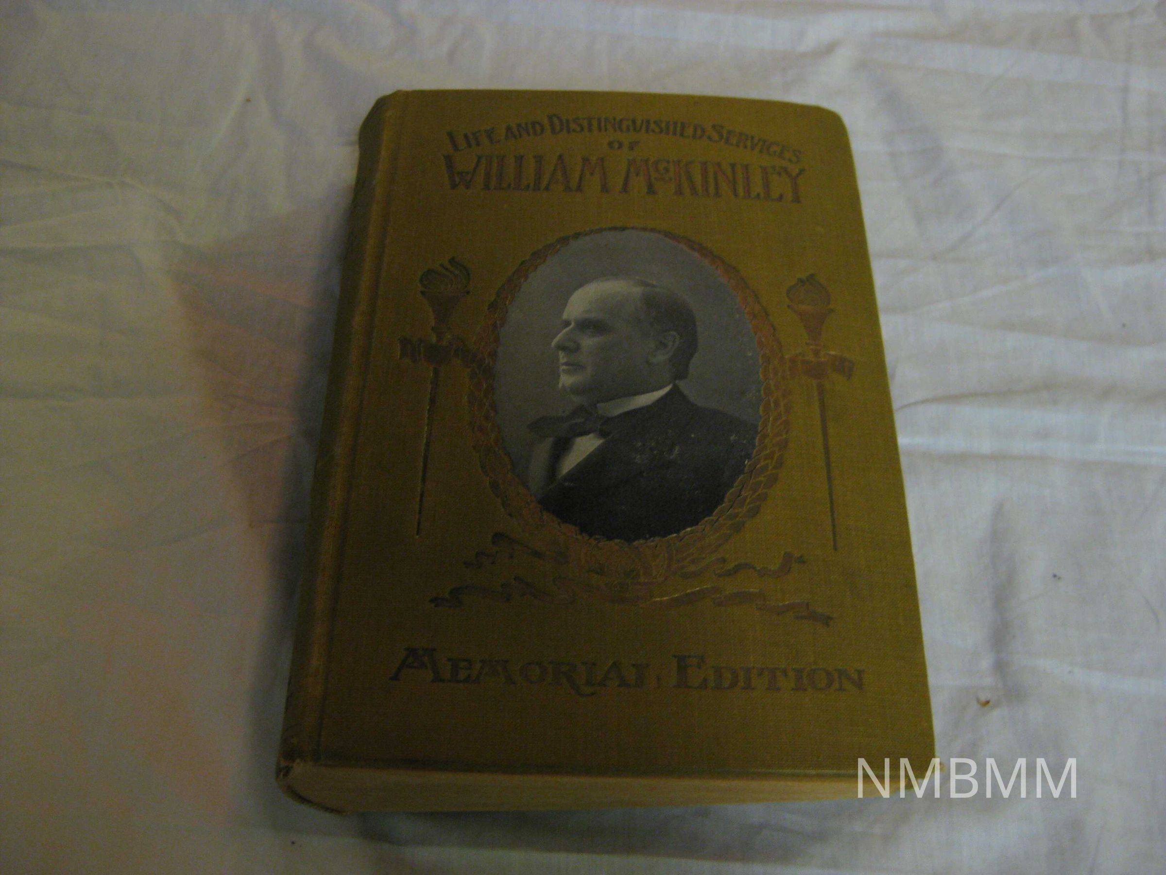 The book is titled " Life and Distinguished Services of William McKinley". It is the memorial edition by Murat Halstead. Book was donated by Mike Cornfield of NIles, Ohio. 9 x 6 inches