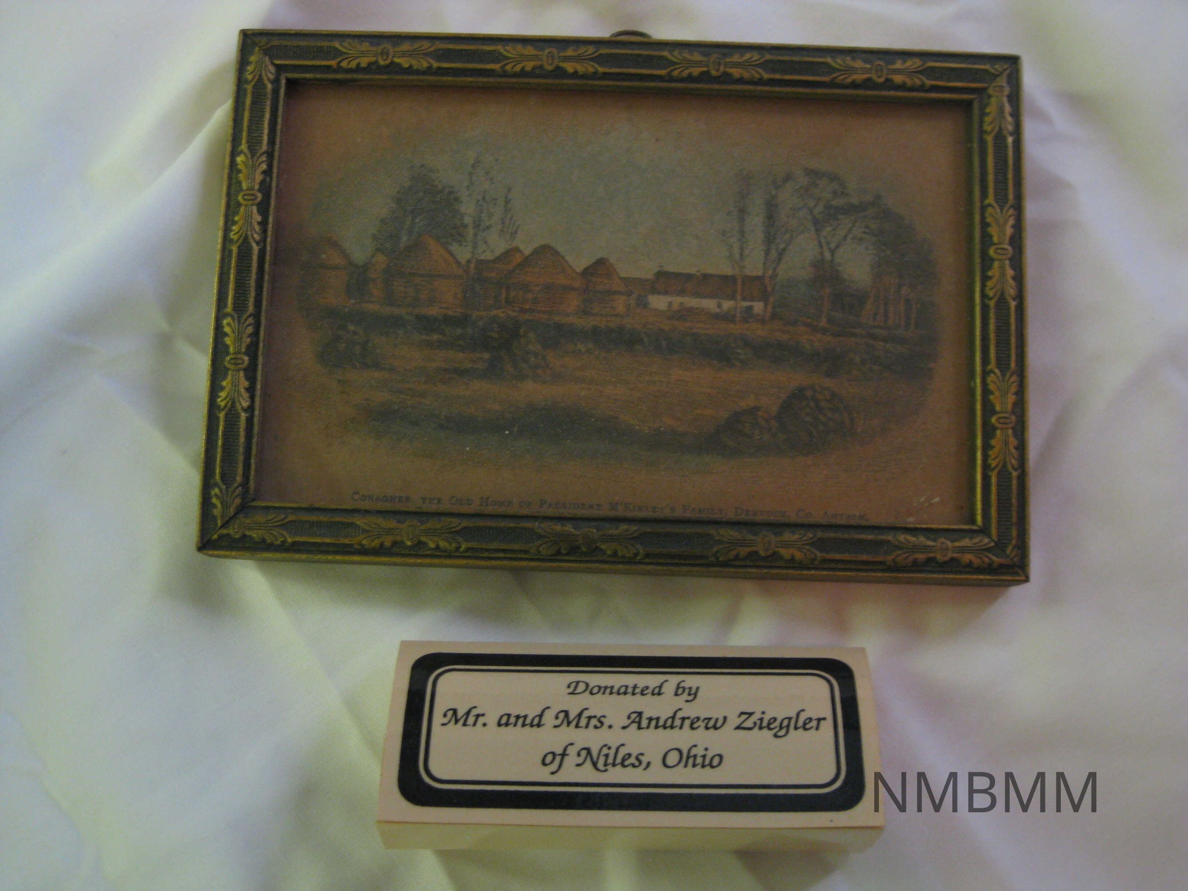DRAWING OF MCKINLEY FAMILY HOME. "CONAGHER, THE OLD HOME OF PRESIDENT MCKINLEY'S FAMILY, DERVOCK, CO. ANTRIM" METAL FRAME. 4" X 6"Collection