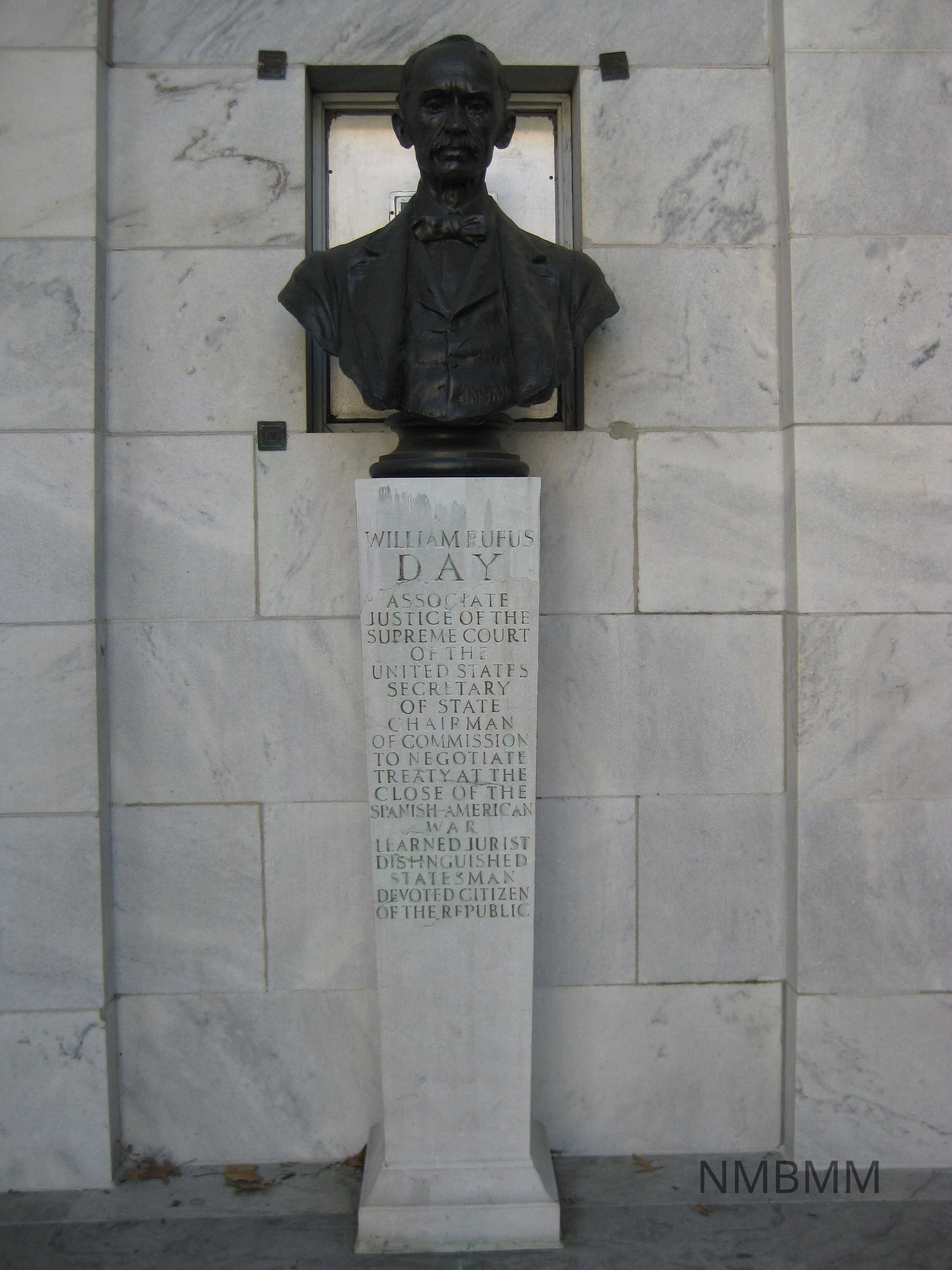 BRONZE BUST OF WILLIAM RUFUS DAY, 37" HIGH. MARBLE PEDESTAL, 60" HIGH WITH BIOGRAPHICAL INFORMATION ON PEDESTAL "WILLIAM RUFUS DAY; ASSOCIATE JUSTICE OF THE SUPREME COURT OF THE UNITED STATES; SECRETARY OF STATE; CHAIRMAN OF COMMISSION TO NEGOTIATE TREATY AT THE CLOSE OF THE SPANISH-AMERICAN WAR"Collection