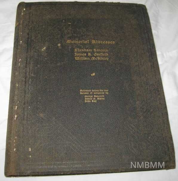 The cover title of this book is, "Memorial Addresses, Abraham Lincoln, James A. Garfield, William McKinley." It says, "Delivered before the two house of Congresses by George Bancroft, James G. Blaine, John Hay."