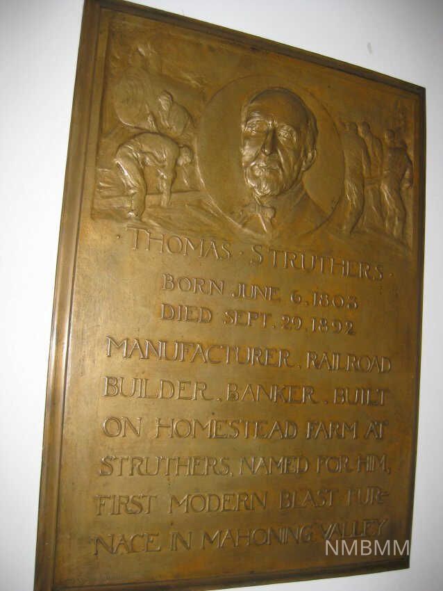 BRONZE PLAQUE OF THOMAS STRUTHERS. 33" X 24" "THOMAS STRUTHERS; BORN JUNE 6, 1803; DIED SEPT. 29, 1892; MANUFACTURER, RAILROAD BUILDER, BANKER, BUILT ON HOMESTEAD FARM AT STRUTHERS, NAMED FOR HIM, FIRST MODERN BLAST FURNACE IN MAHONING VALLEY"Collection