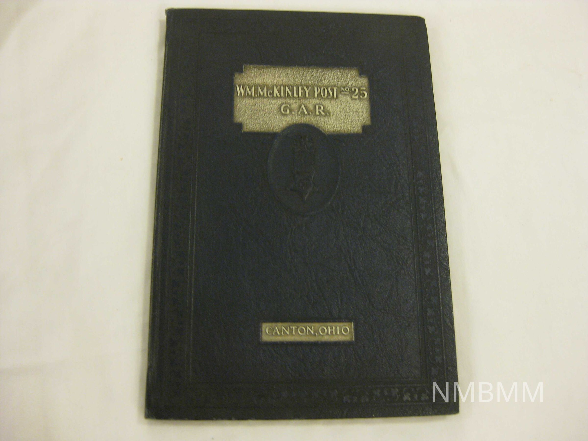 The book is titled "Honor Roll and History, William McKinley Post No. 25, G.A.R.", created out of Canton, Ohio. It lists members of the post and their accomplishments. 5.75 by 8.25 5.75 x 8.25 inches Black with silver lettering and designs embossed on the front