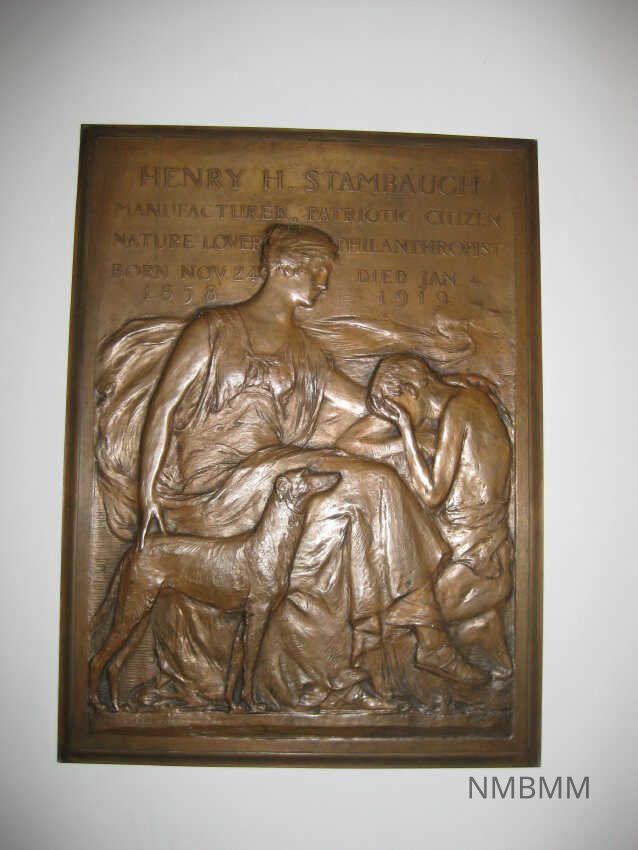 BRONZE PLAQUE OF H.H. STAMBAUGH. 33" X 24" " HENRY H. STAMBAUGH; MANUFACTURER, PATRIOTIC CITIZEN, NATURE LOVER, PHILANTHROPIST, BORN NOV. 21, 1808; DIED JAN. 4, 1910"Collection