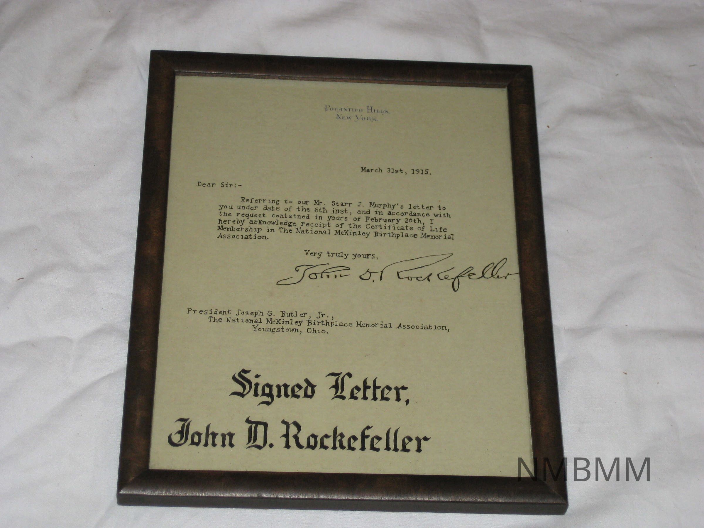 Letter from John D. Rockefeller to J.G. Butler acknowledging receipt of life membership certificateCollection