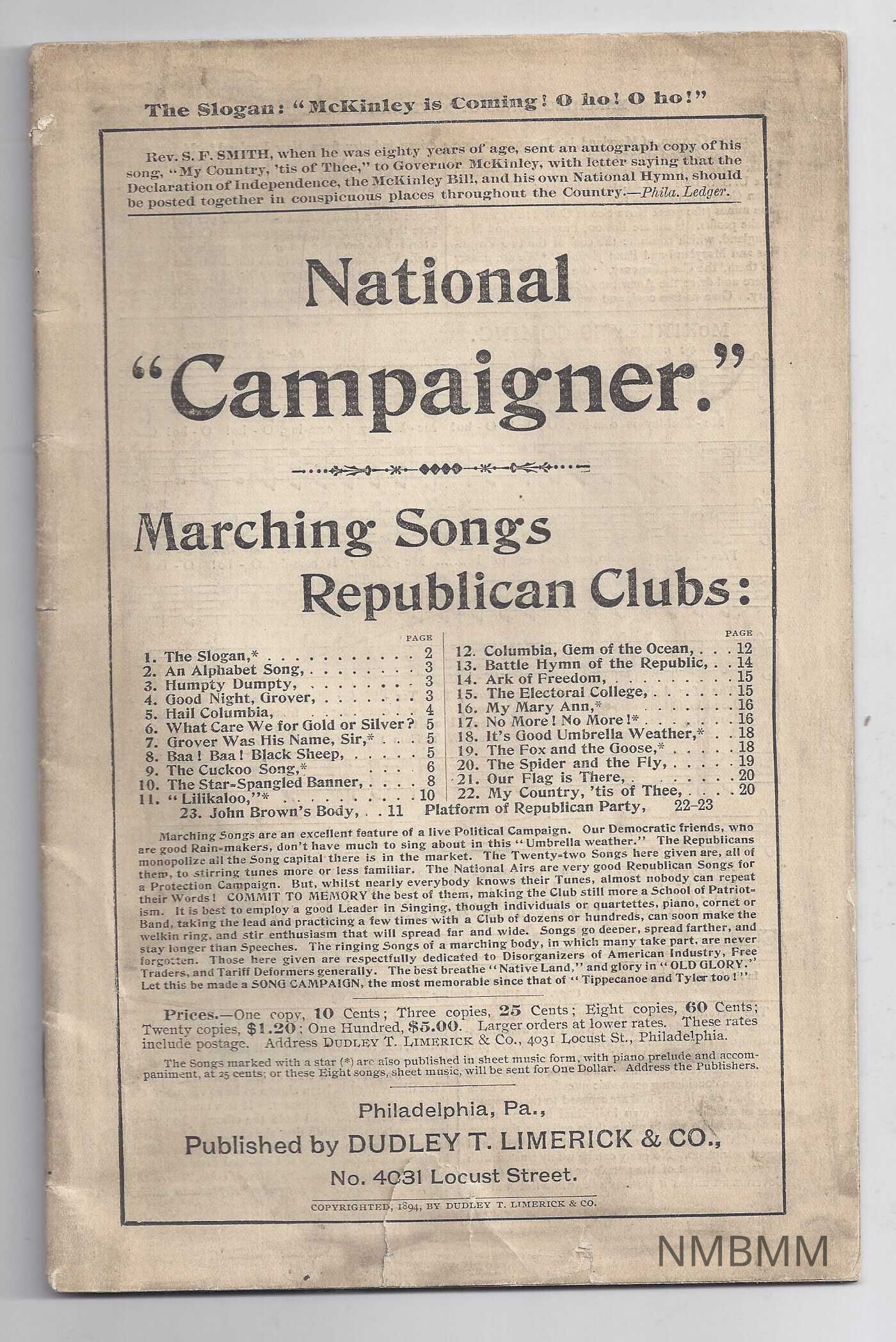 National "Campaigner" Marching Songs of Republican Clubs.Entry/Object ID