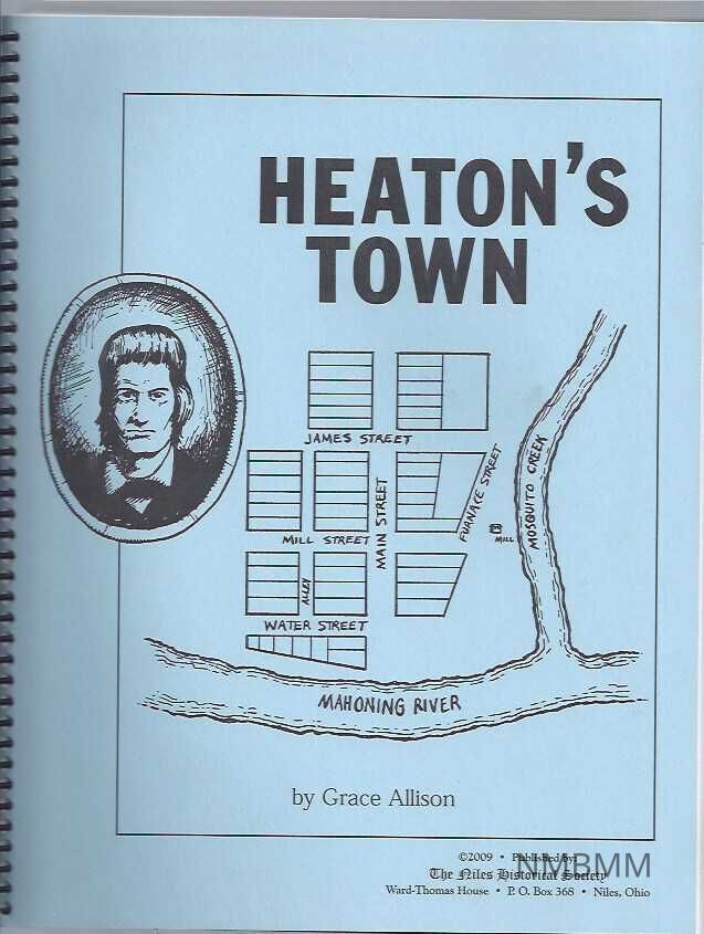 Book is Wedgewood blue, paper cover, wire spiral binding. The front has a sketch of James Heaton, along with a map of the original plat of Niles, Ohio. The back is plain.Collection