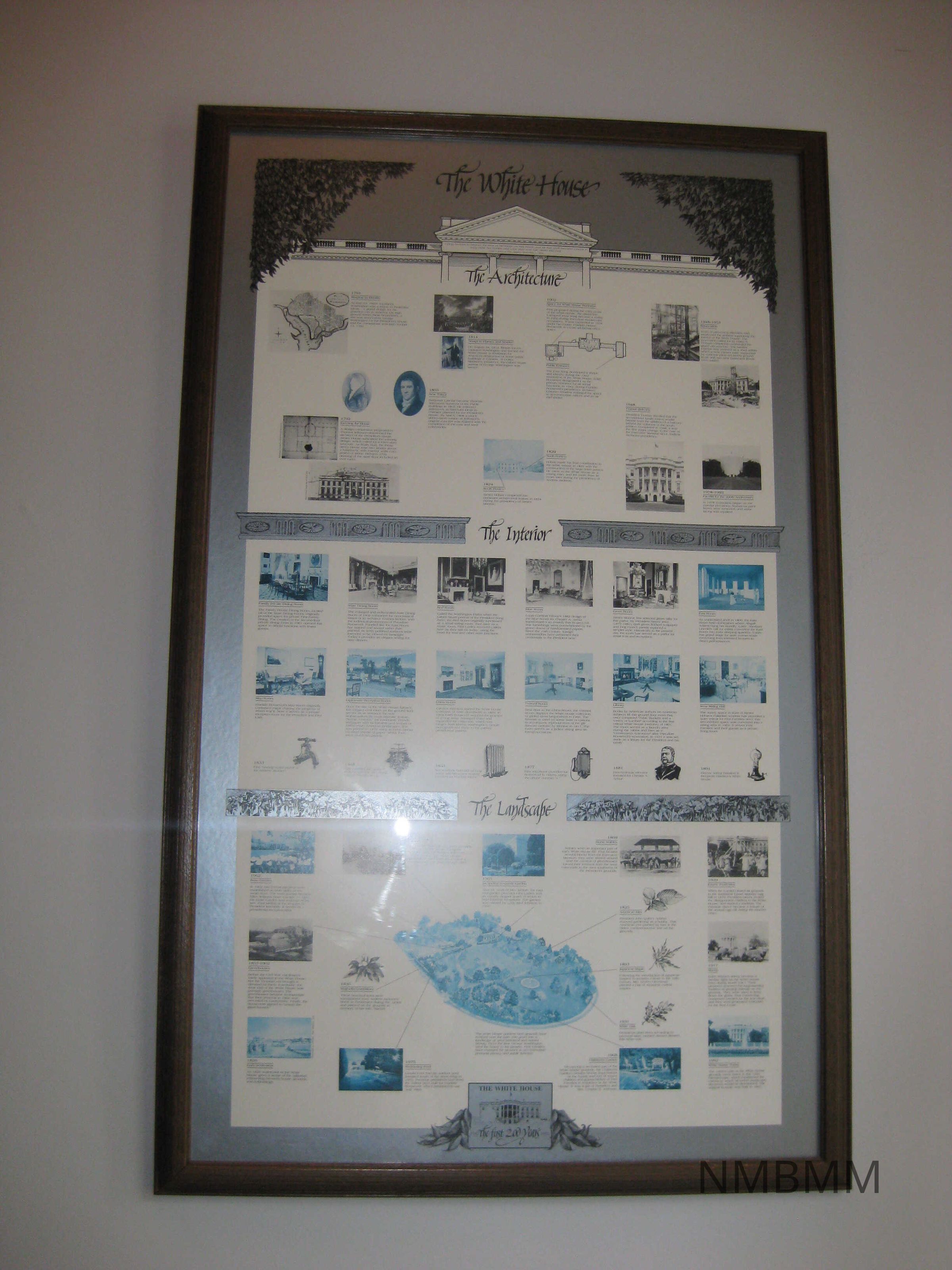 The item is a framed color poster that discusses and pictures different parts of the White House over the first 200 years of the house. It describes the interior, the architecture, and the landscape. It discusses specific gardens, plants, and rooms. It looks at the time frame of 1792-1992.Collection