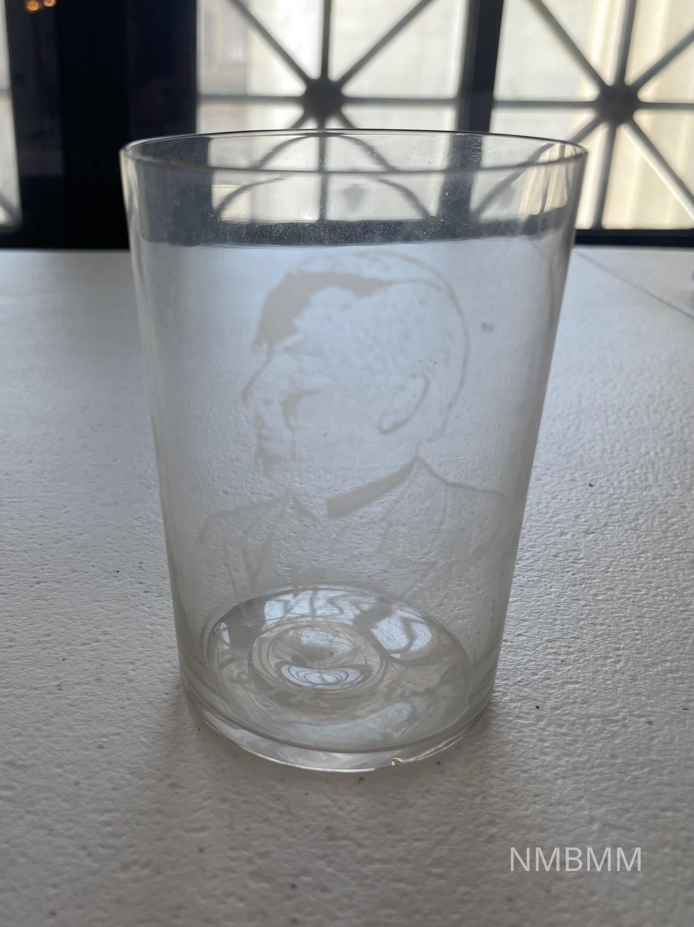 The item is a commemorative drinking glass that features an etching of William McKinley with his signature featured below the picture.