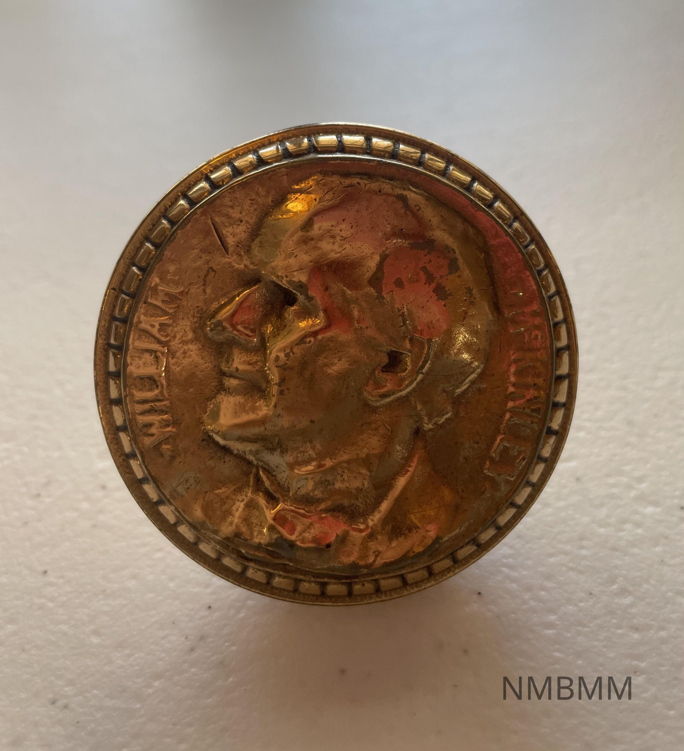 The item is a brass doorknob that features the face and name of William McKinley. It is part of a set; the match is 1998.1.01b. The item was presented to the museum by Ross W. Baker.