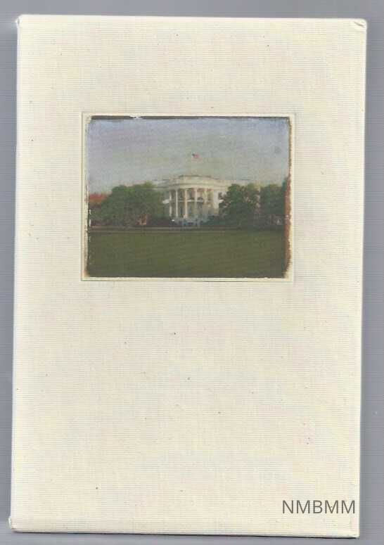 Two hard bound volumes in a matching case. The front of the outer case is off White, with a painting of the White House in a 3 x 4 inch rectangle; the spine of the case has "Seale The President's House and White House Historical Asociation" in gold lettering; the back of the case shows a critique, along with a synopsis of the books, the White house Historical Association's web address and phone number, and bar code showing thie ISBN in a white 4.5 x 5.25 inch rectangular sticker. The two volumes are nearly identical. The front and back covers of each are ecru along the spine, with a design of light grey, dark grey, white, and coral swirls on the opposite edge. The spine of Volume one reads "Seale The President's House I, White House Historical Association" in gold lettering on an ecrus fabric background. The spine of Volume two reads "Seale The President's House II, White House Historical Association" in gold lettering on an ecrus fabric background.Collection