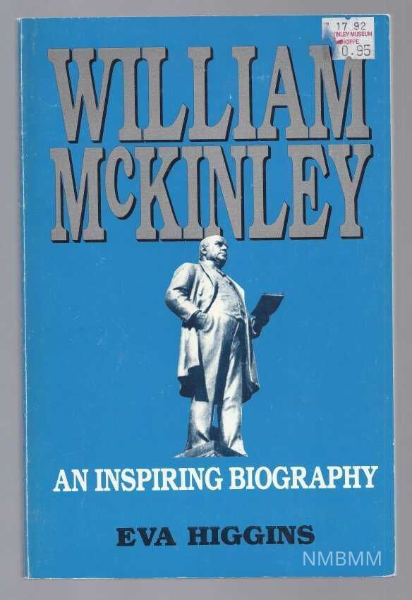 The book itself, is blue, on the cover is a picture of a staute of William McKinley. There is a price sticker in the upper right hand side, "purchased 7-17-92 from McKinley Museum Shoppe for $0.95." The back entails the summary (mentioned above).