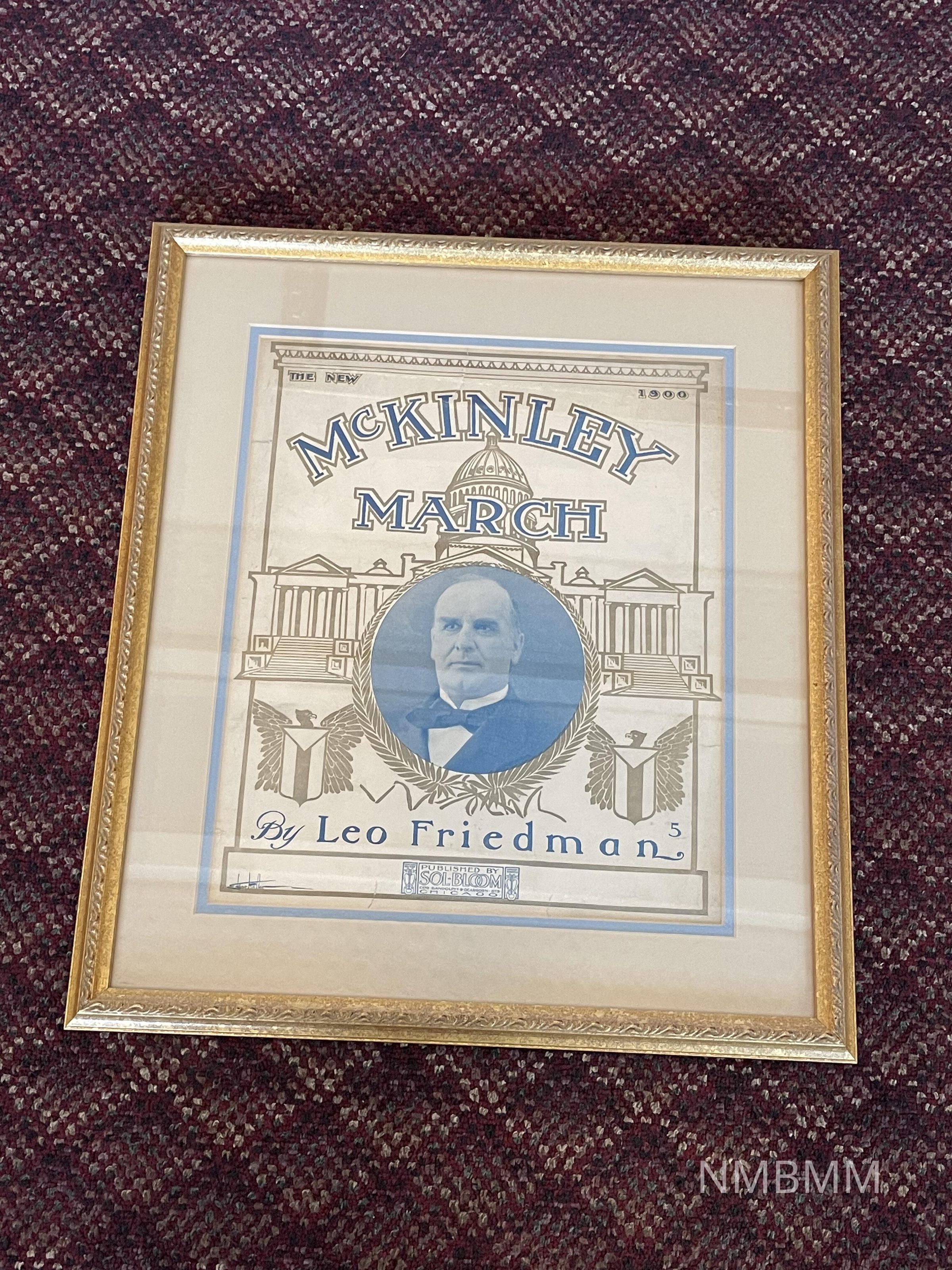 The item is a print for President William McKinley. The print is entitled, "The New McKinley March 1900" by Leo Friedman. Published by Sol-Bloom, Chicago. Edgar Keller's signature is featured on the bottom corner.Acquisition