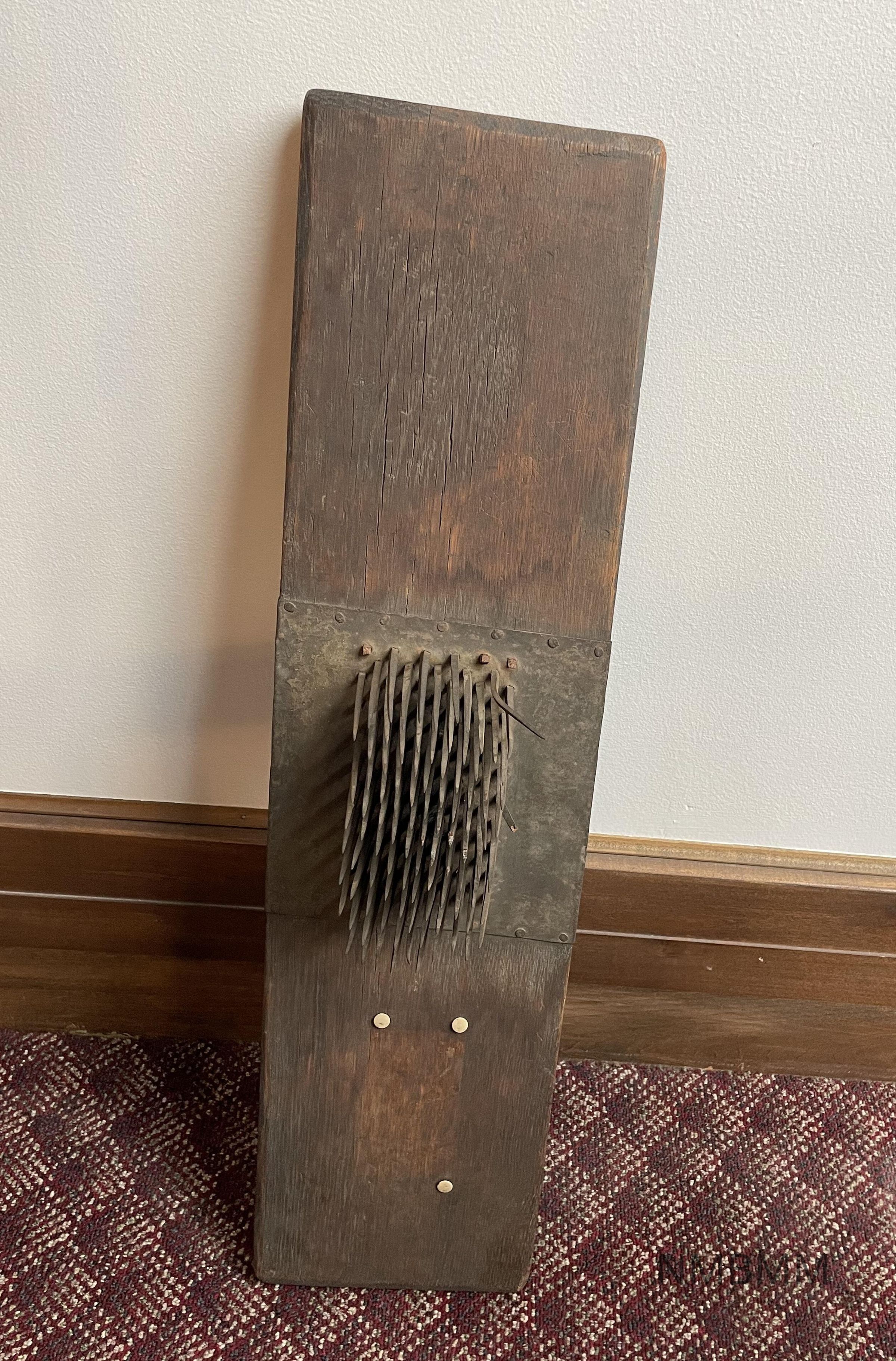 The item is a fleece comb. It was used in household linen production. Moistened flax fibers would be passed through the teeth to prepare them for spinning.