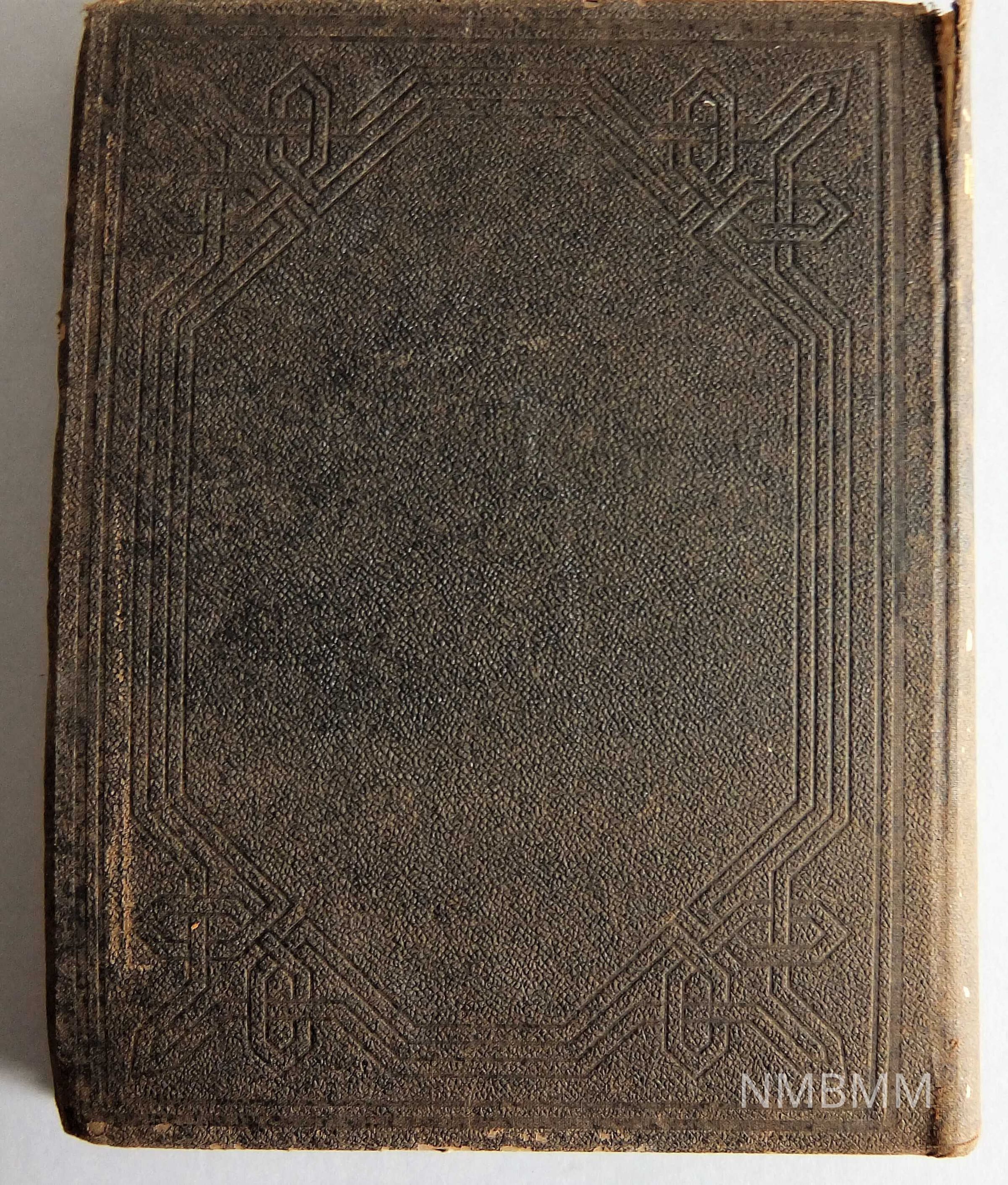 Book of the memorial addresses for Abraham Lincoln, James Garfield, and William McKinley as delivered by George Bancroft, James G. Blaine, and John Hay. The book is bound in black textured leather, with the title and authors' names in gold. The back of the book is plain. Black leather binding with gold lettering