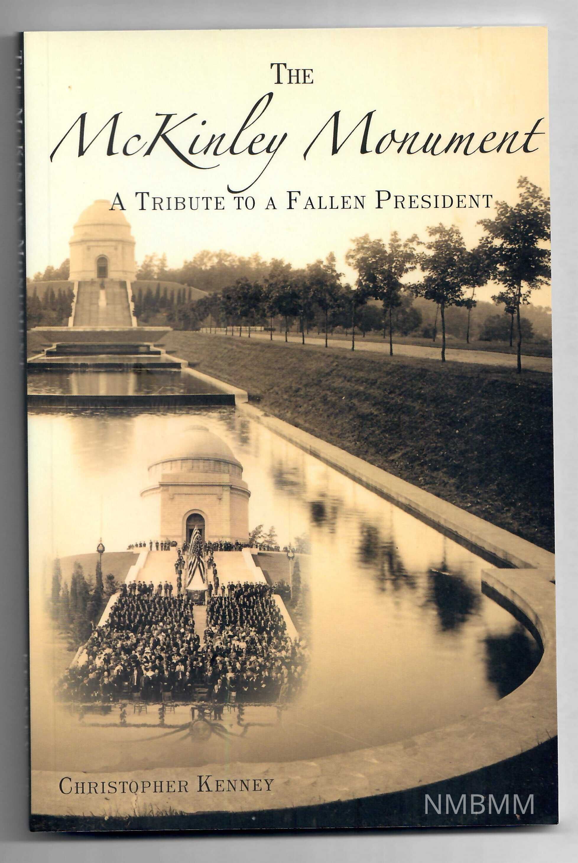 This front cover of this paperback book features a sepia-toned photo of the McKinley Monument in Canton, as it appeared with the reflecting pool in front of it. There is an inset photo of the dedication of the Monument on the pool. The title is printed in script letters across the top, with the subtitle beneath it.