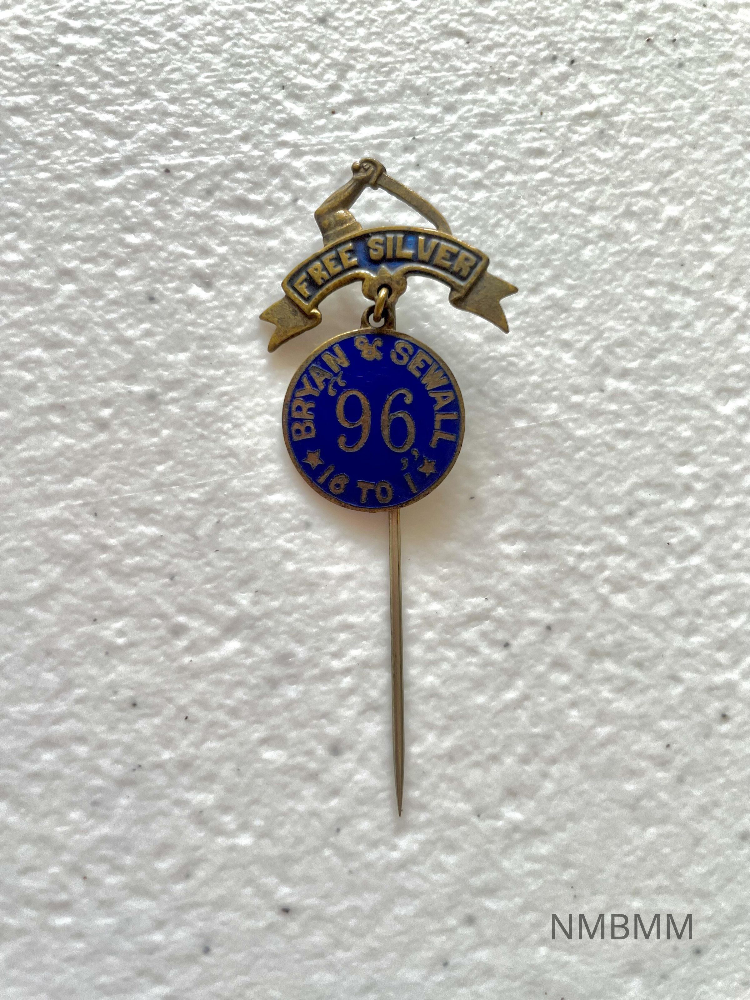Straight pin, "Free Silver", "Bryan and Sewall, 96, 16 to 1", 1896Collection