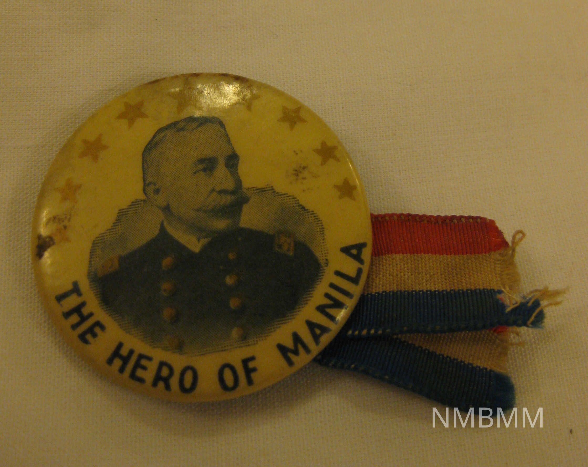 "The Hero of Manila." with colored Dewey photo, gold stars, red, white, blue ribbon.Collection