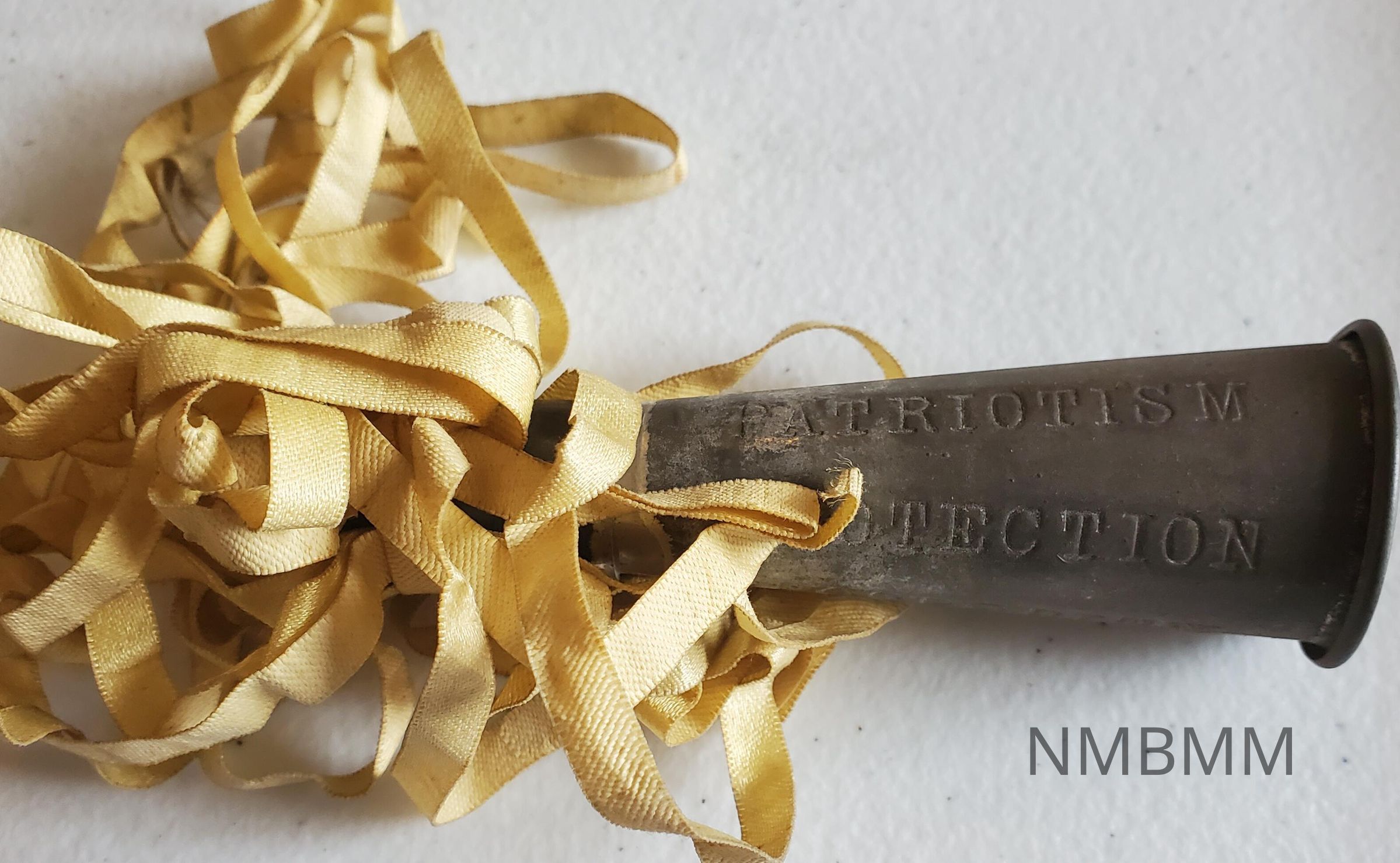 This item is a rare campaign horn from the1896 presidential election. It features the slogan, "Patriotism, Protection, and Prosperity." It has yellow ribbon flowing out of it.Collection