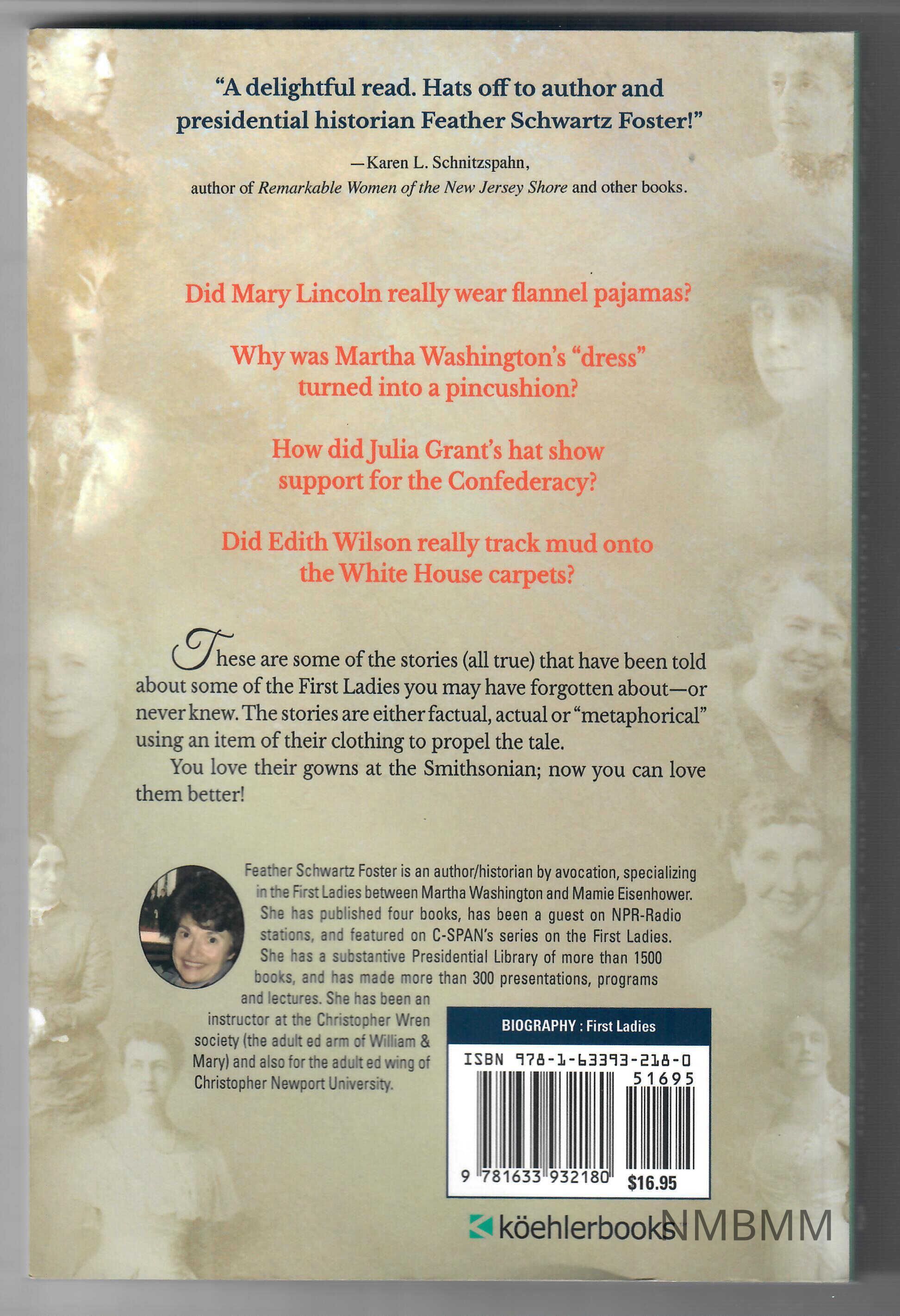 Paperback. The front cover features a photo of an old cabinet, with photos of the White House and Mary Todd Lincoln on it. The background consists of photos of Helen Taft, Ellen Wilson, Florence Harding, and Lou Hoover. The back features a brief synopsis of the book, and a biography of the author. Photos in the background are of Julia Grant, Ida McKinley, Bess Truman, Lucy Hayes, Frances Cleveland, Caroline Harrison, Grace Coolidge, eleanor Roosevelt, Mamie Eisenhower, and Edith Wilson.Collection