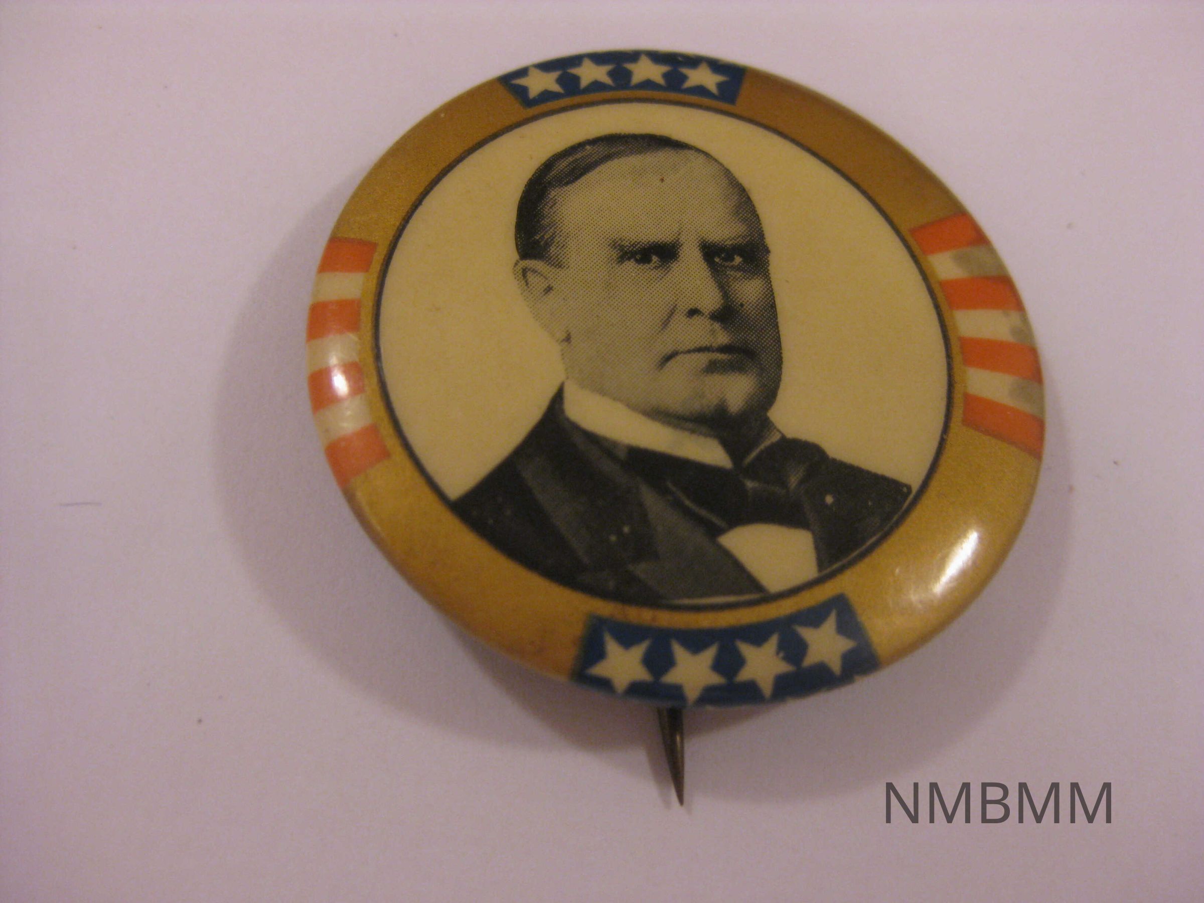 Large gold, red, white and blue McKinley pin.