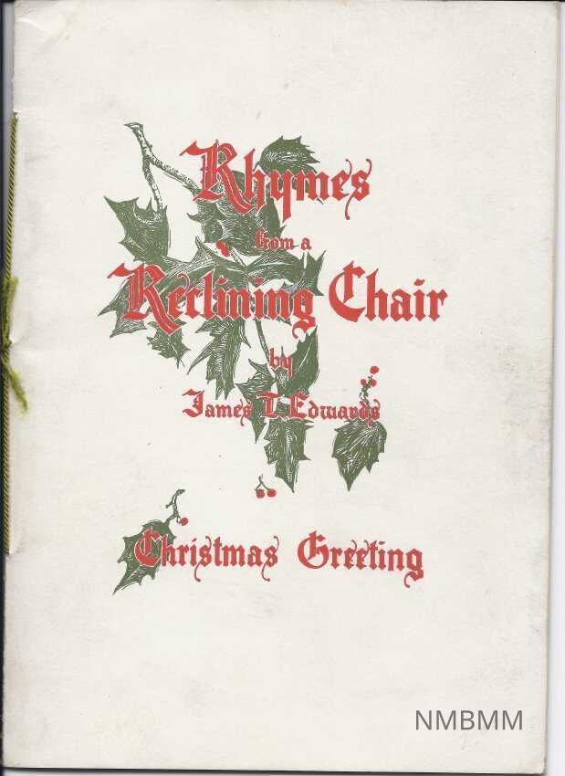 The item is a book titled, "Rhymes from a Reclining Chair by James T. Edwards, Christmas Greeting." It is dated 1901 from Randolph, N. Y.