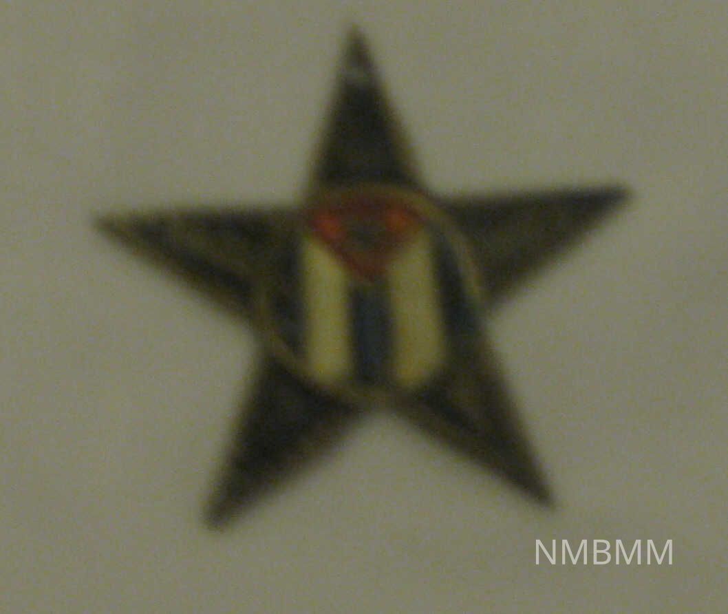 The item is a star pin with a missing back. Front has red white and blue enamaling with print that says "Free Cuba". 1.5" by 1"