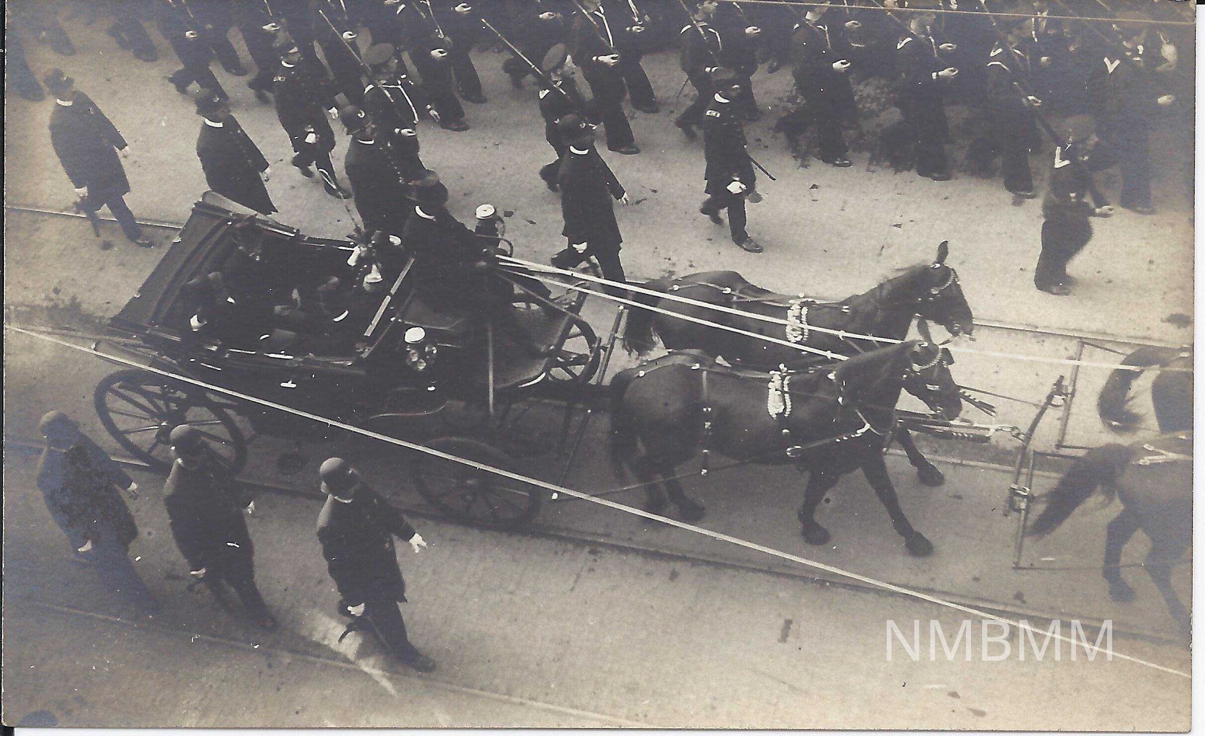 The presidential horse carriage being pulled along side soliders and police officers.Collection