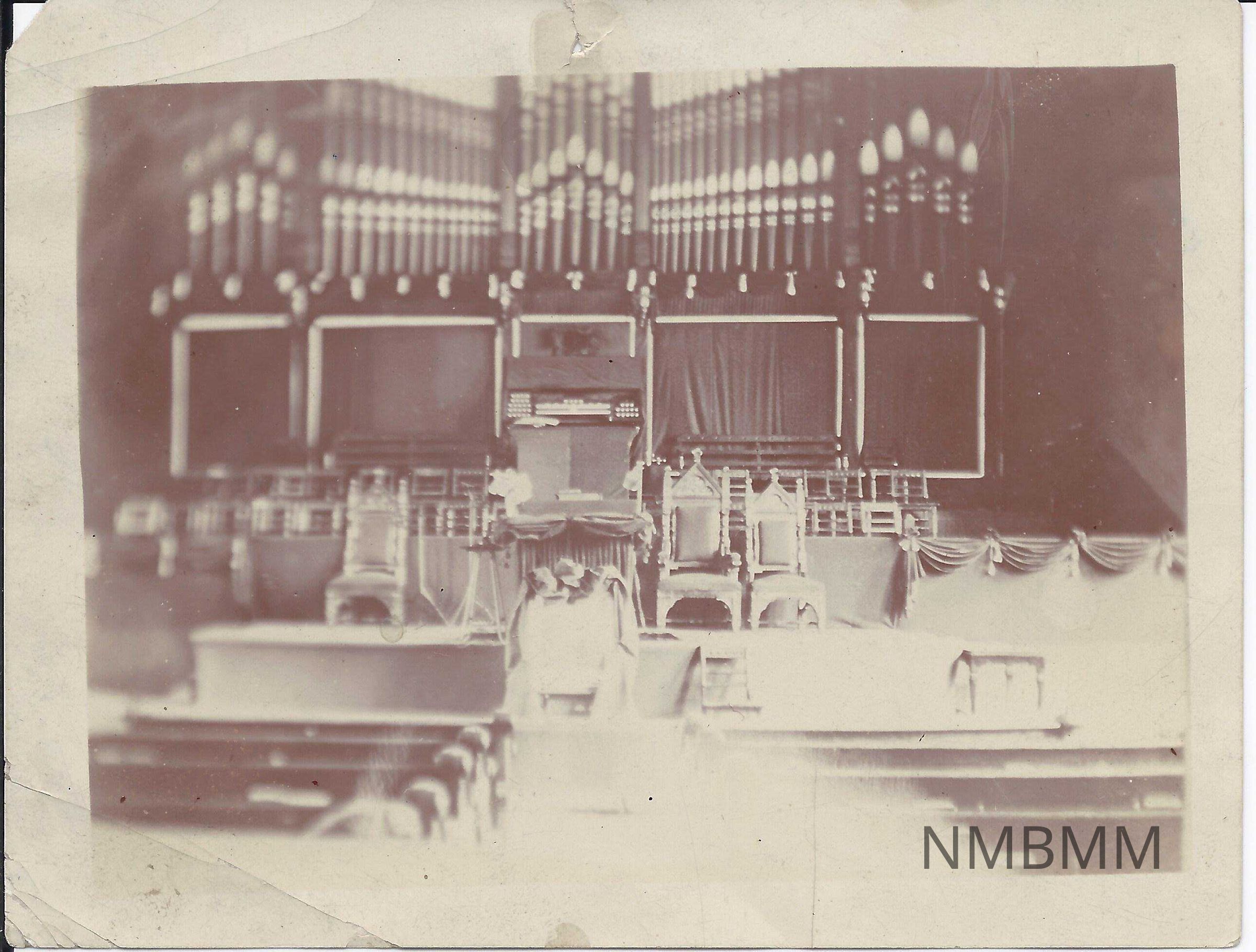 A photograph showing the interior of the First M.E. Church in Canton, Ohio, where McKinley's funeral was held.