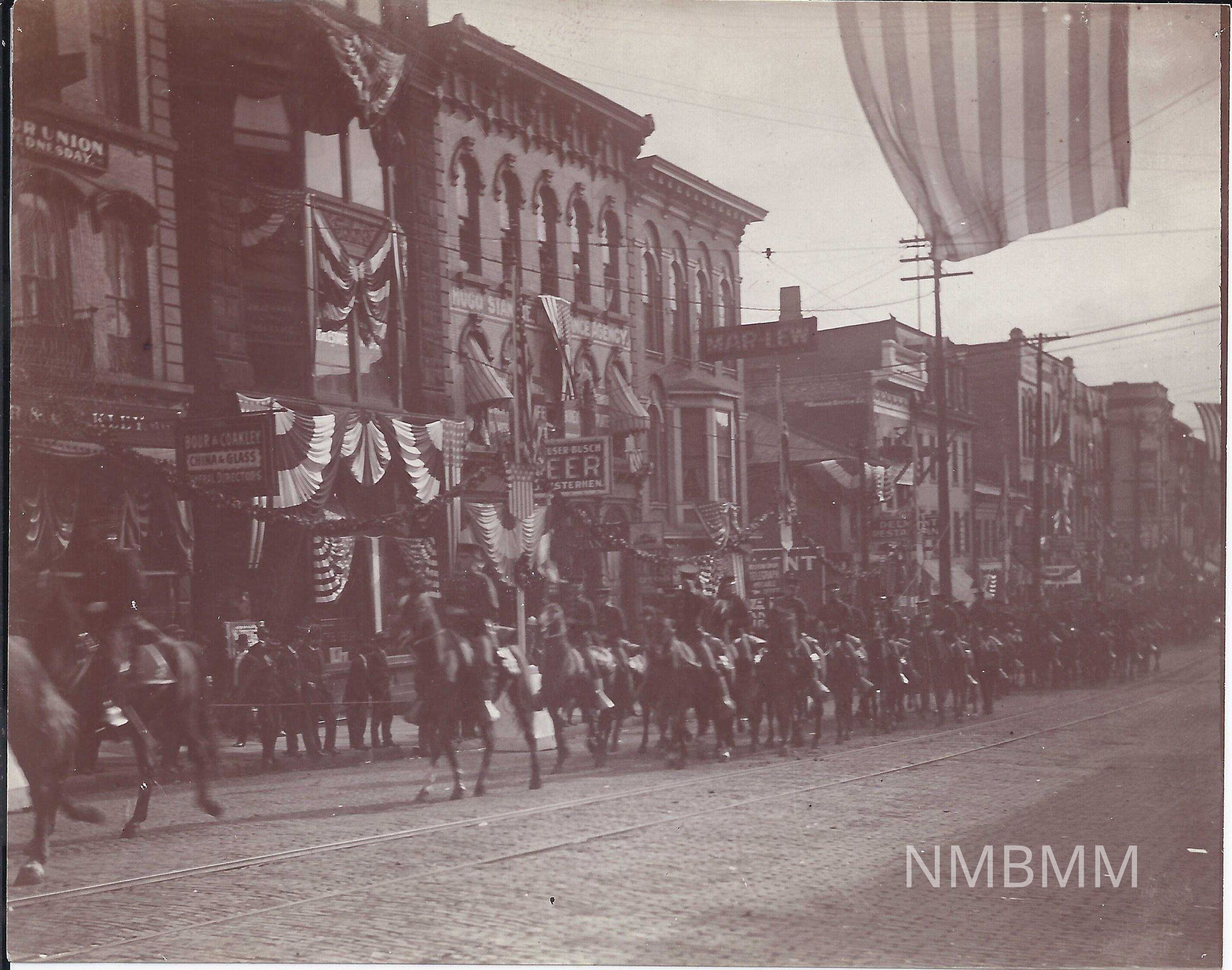 A photograph showing soldier's riding through Canton,Ohio on horses.Collection