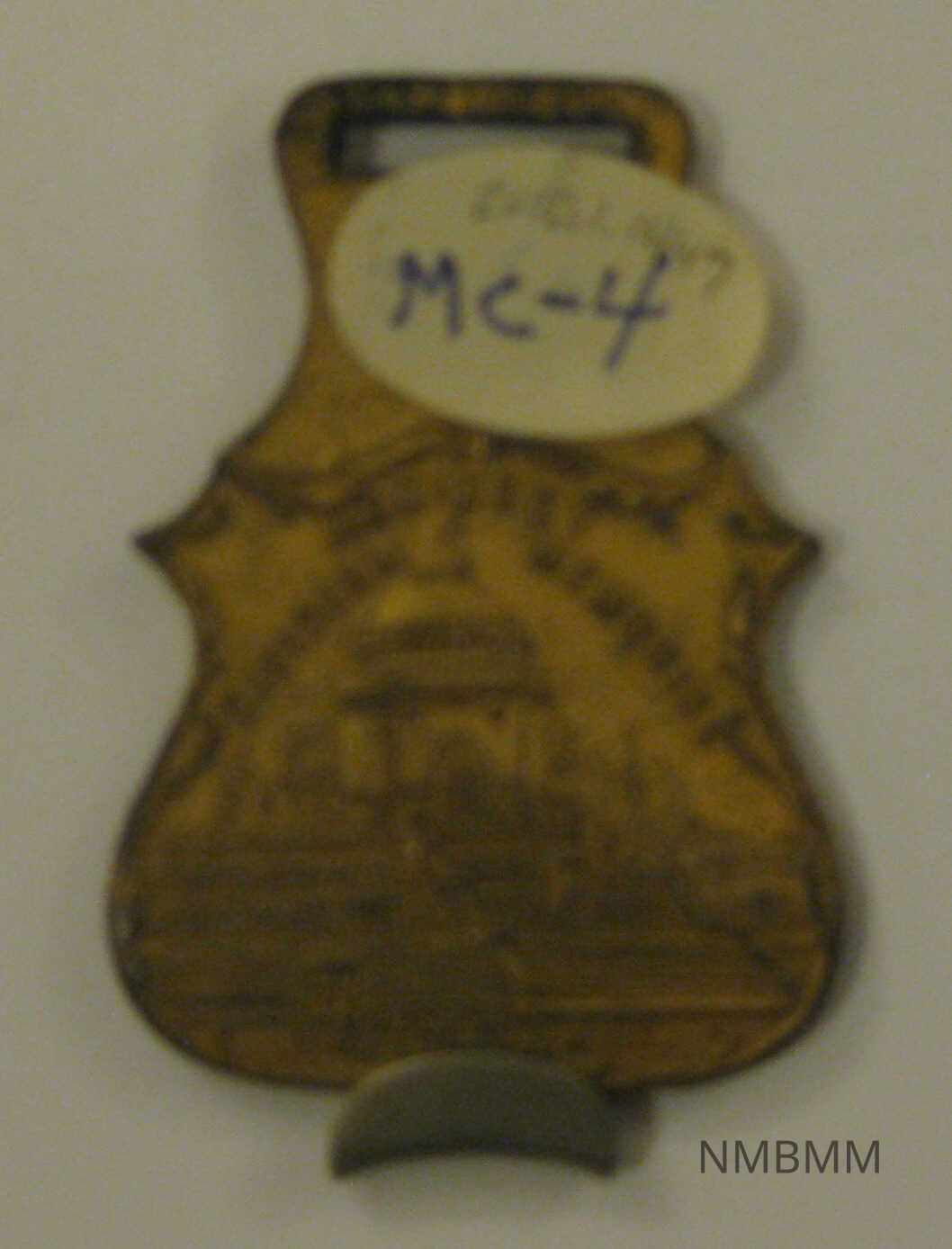 The item is a gold badge depicting the McKinley Memorial in Canton, Ohio.Collection