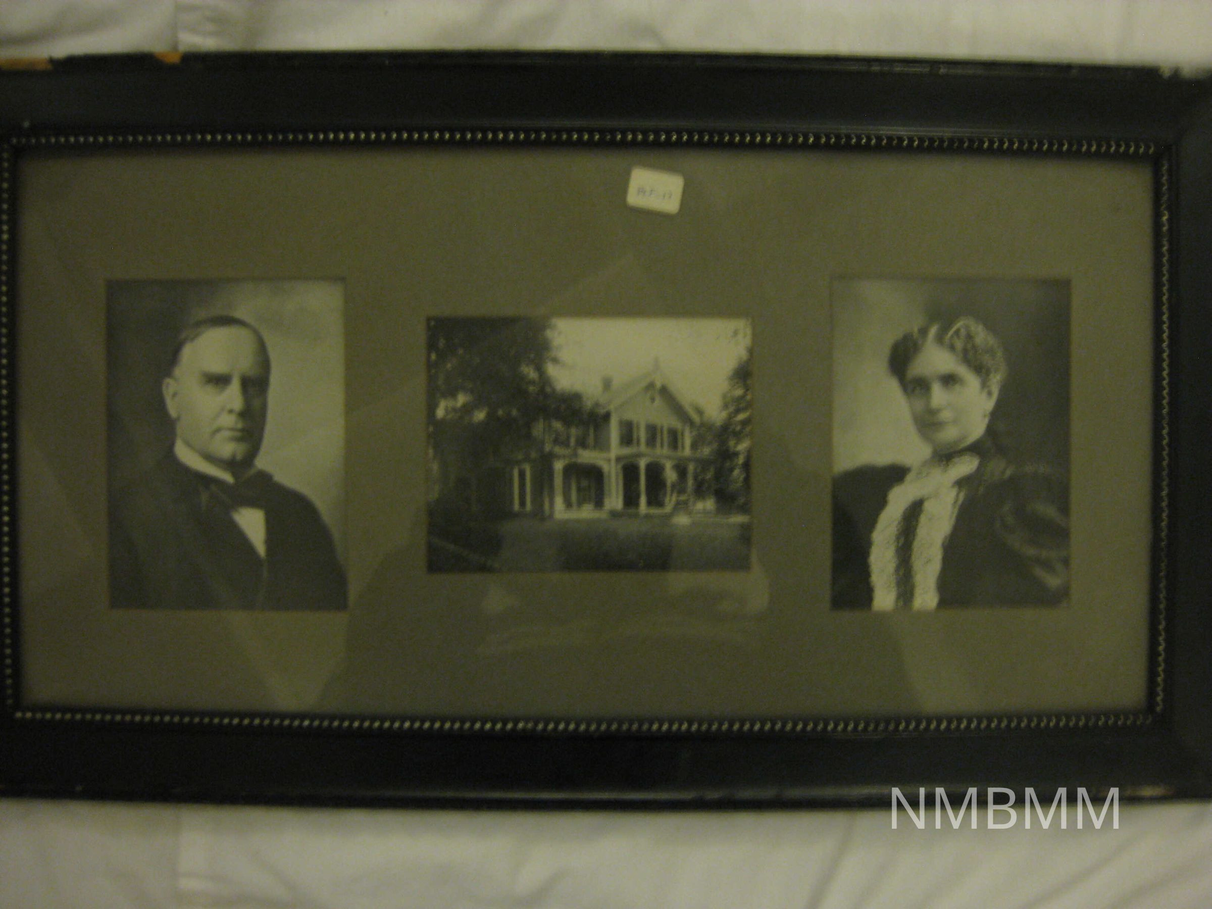 A photograph of President McKinley and Ida McKinley with their home in Canton, Ohio pictured in the center.Collection