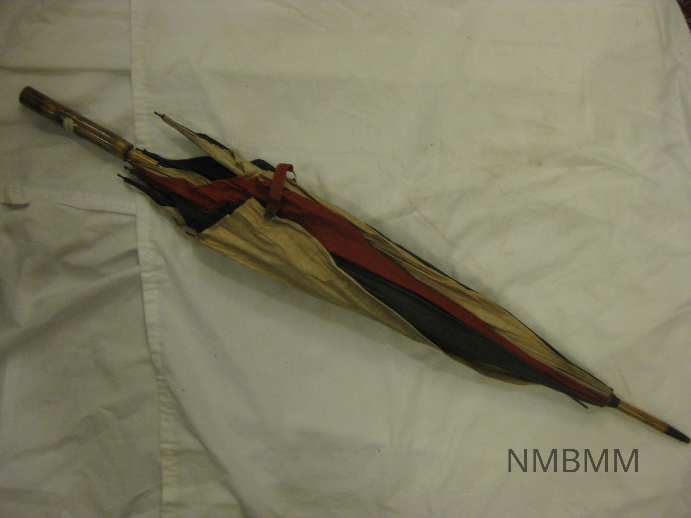 A red, white, and blue umbrella used during the campaign of President McKinley.Collection