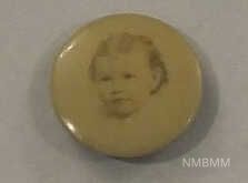 This item is a pin with a portrait of a young girl.