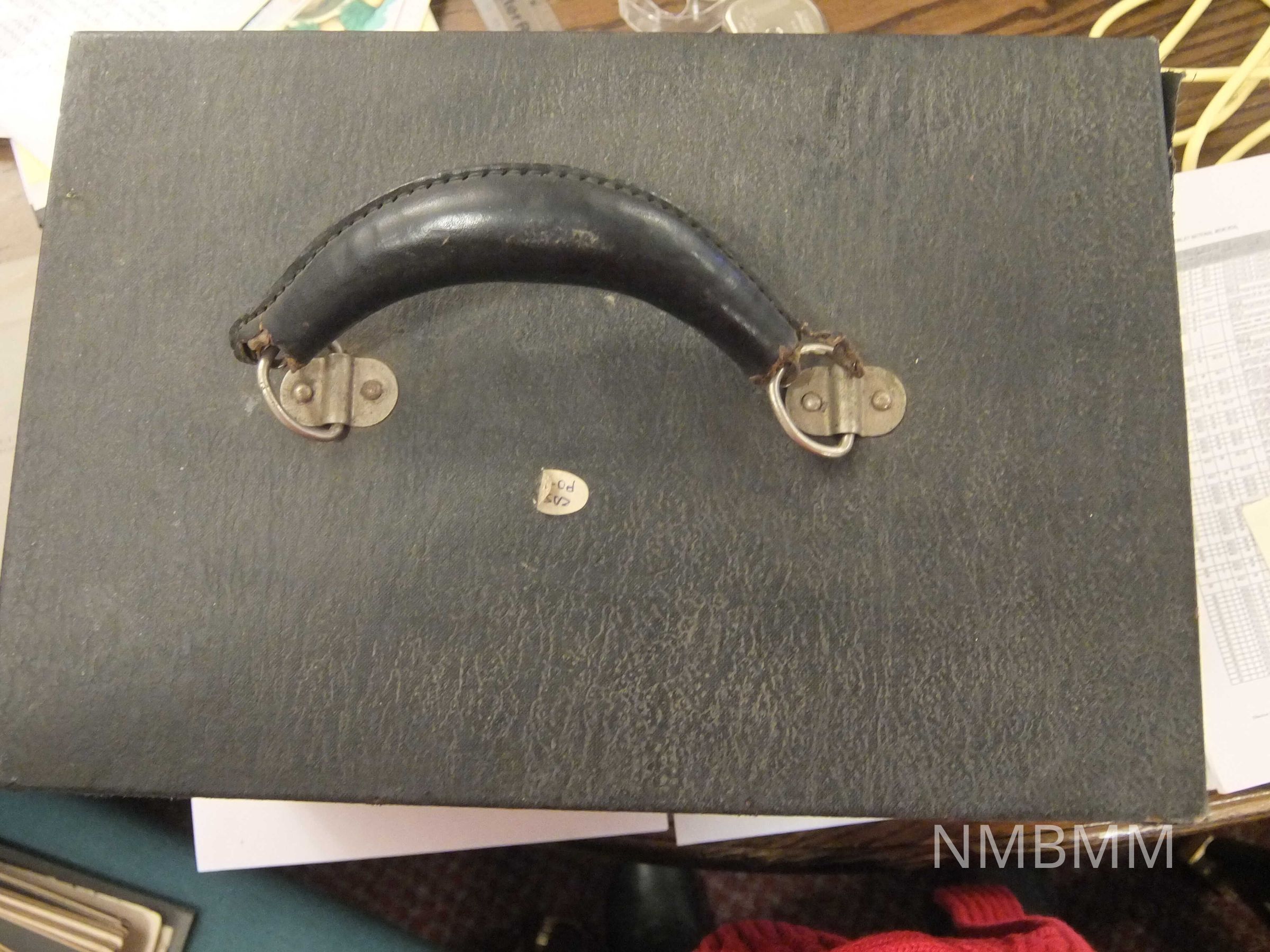 Black case with McKinley photos. Top of case separates from bottom of case, and the two are attached with two metal latches near the bottom of the smaller sides. Bottom has four rubber legs.Collection