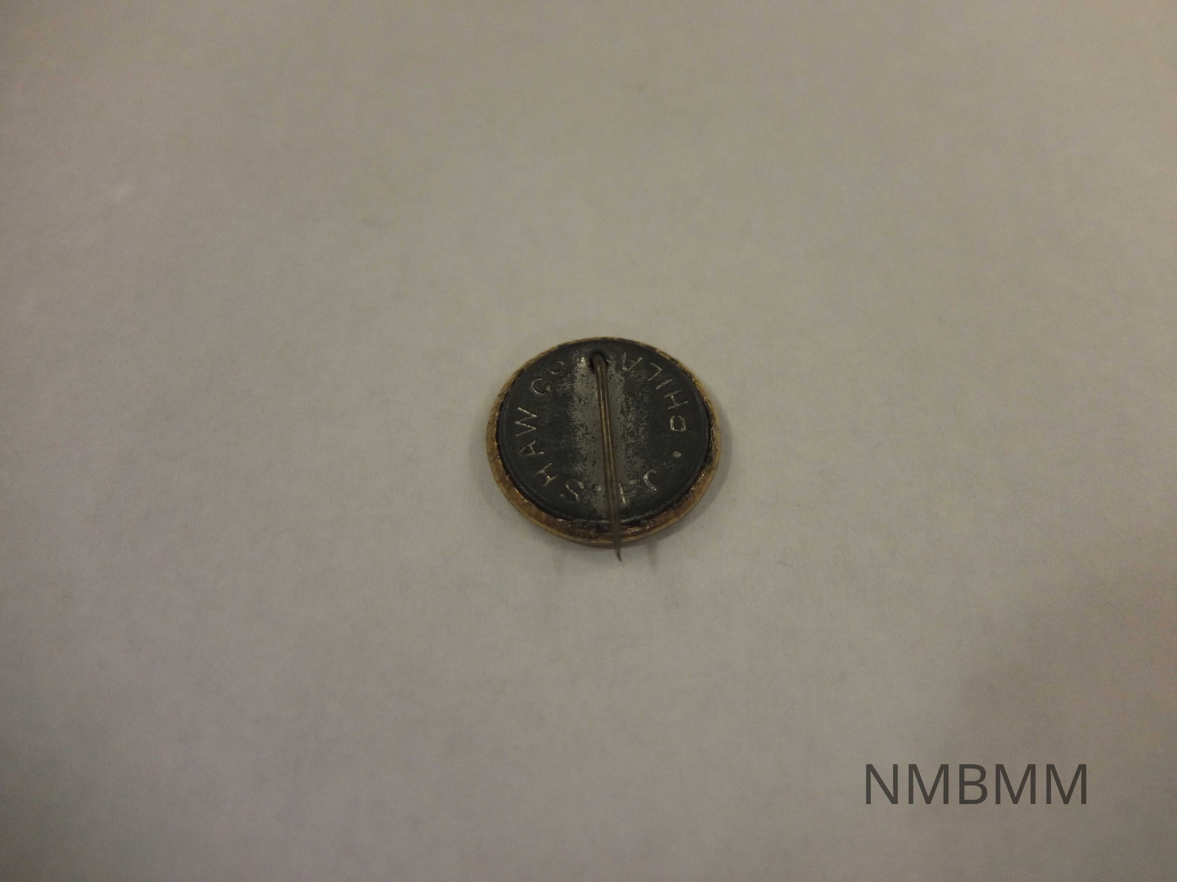 This item is a pin containing a portrait of President McKinley and Vice-Presidential candidate Theodore Roosevelt. The background is gold, and the front reads, "Prosperity at Home, Prestige Abroad." The back reads, "J.H. Shaw Co., Phila."Collection