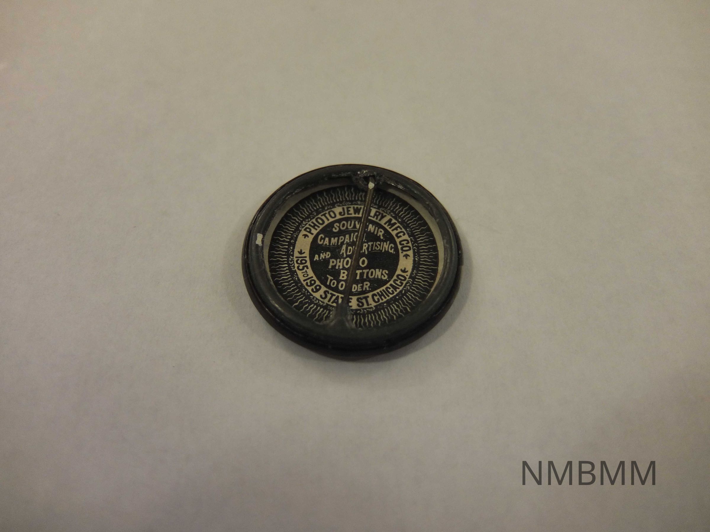 This item is a pin containing portraits of President McKinley and Vice-Presidential candidate Hobart. The caption reads, "G.O.P., McKinley and Hobart." There is an American flag background. The back reads, "J.H. Shaw Co., Phila."Collection