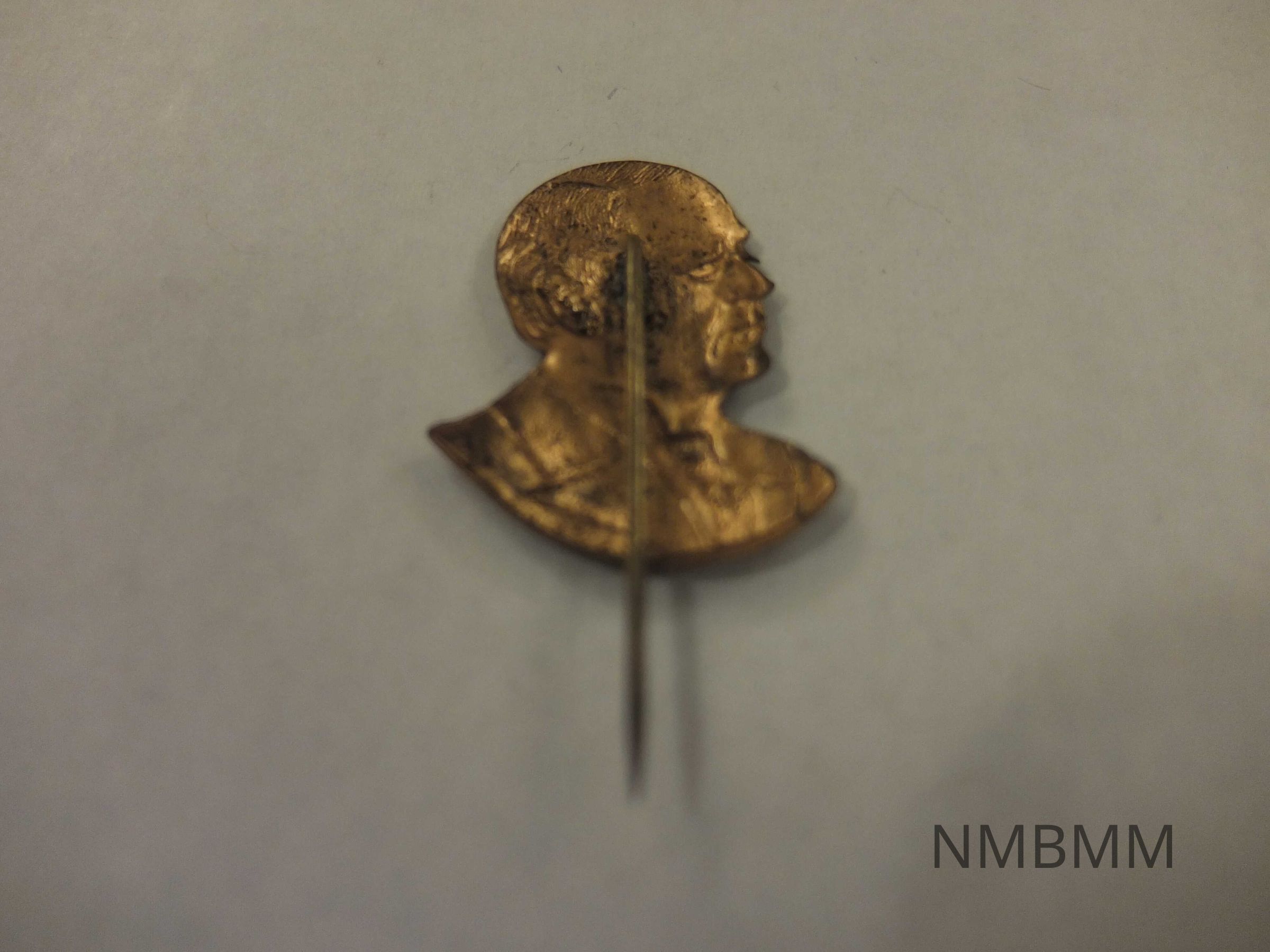 This item is a gold campaign pin in the shape of President McKinley's bust, and a straight pin on the back.Collection