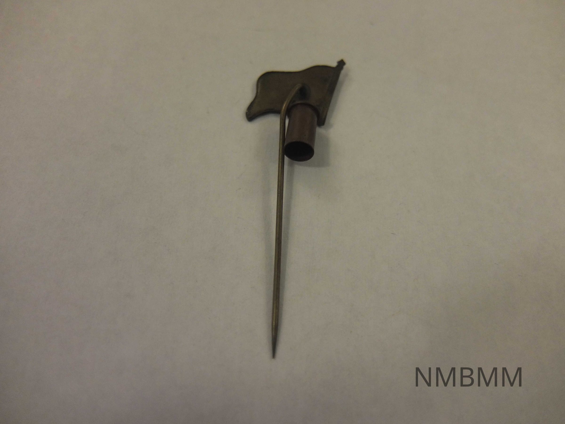 This item is a pin with an American flag, with a tiny pail attached to the bttom of the flag.