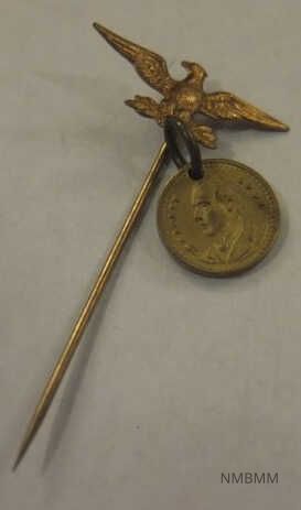 This item is a gold pin is in the shape of an eagle, and it has a small circular attachment with the portrait of President McKinley. The back has a 1 1/2 inch straight pin.Collection
