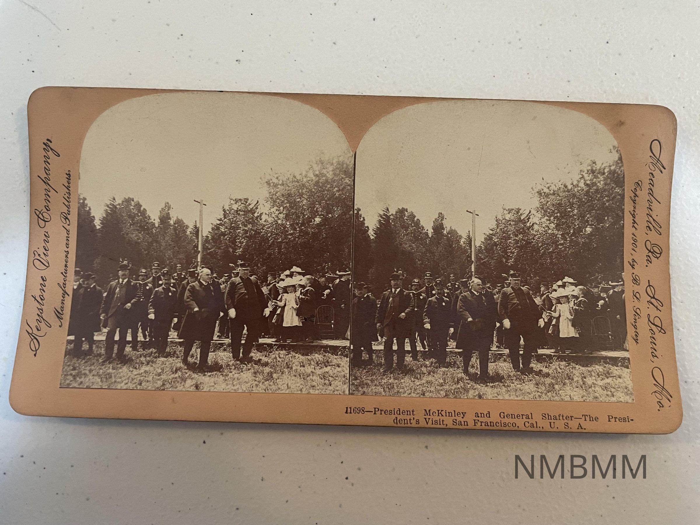 This item is a stereograph containing two images of President McKinley and General Shafter- The President's Visit to San Francisco, California. Copyright in 1901, by B.L. Singley.