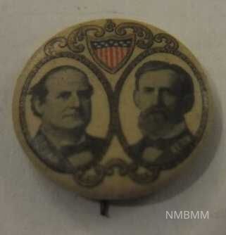 front of pin showing William Jennings Bryan and his runningmate Stow