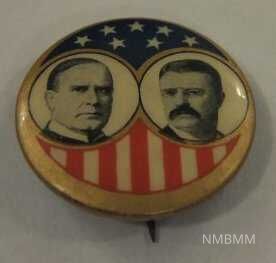 McKinley and Roosevelt pin with shield background