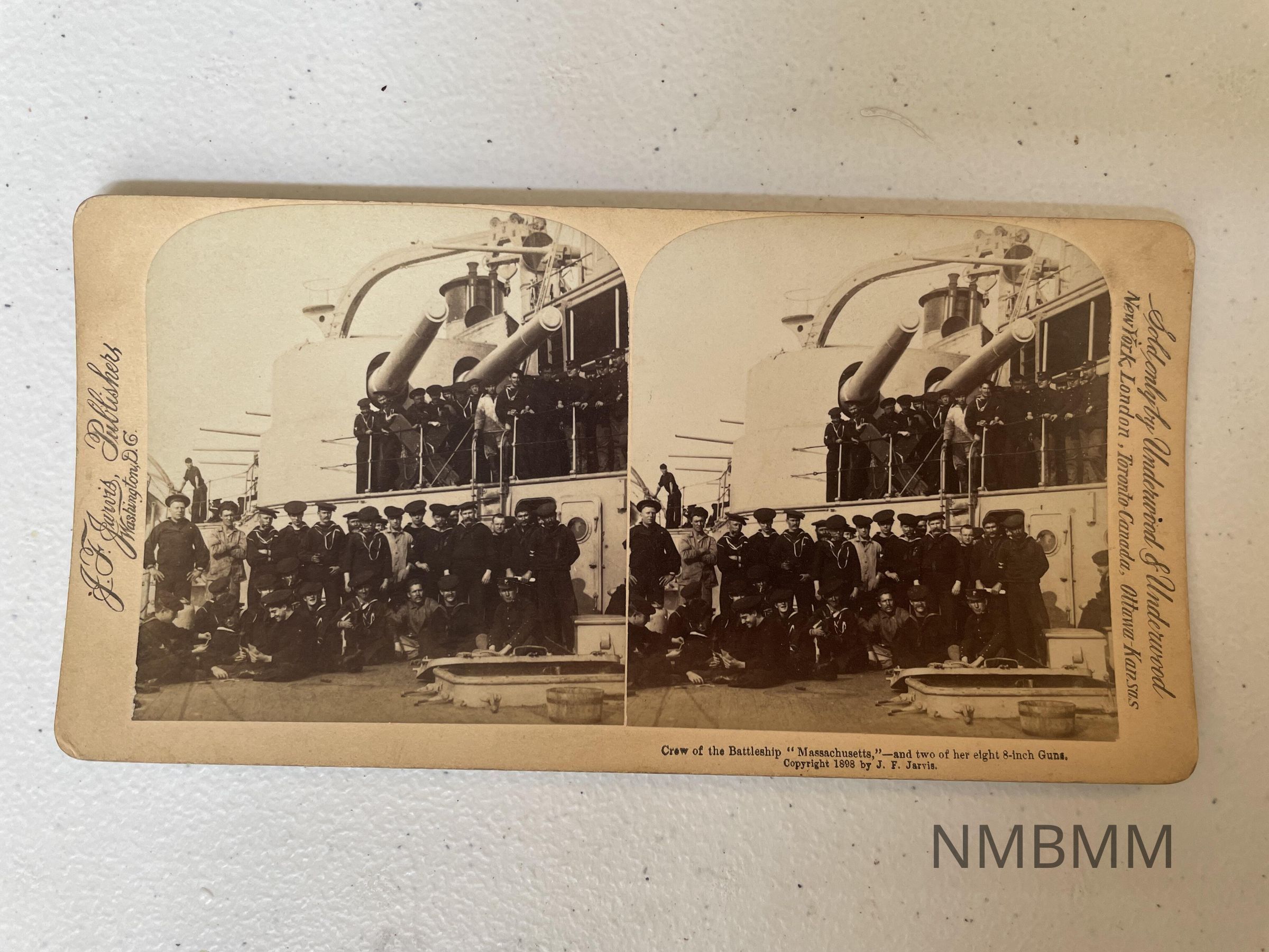 This item is a stereograph containing two images of the crew from the Battleship USS Massachusetts. Copyright in 1898 by J.F. Jarvis.Collection